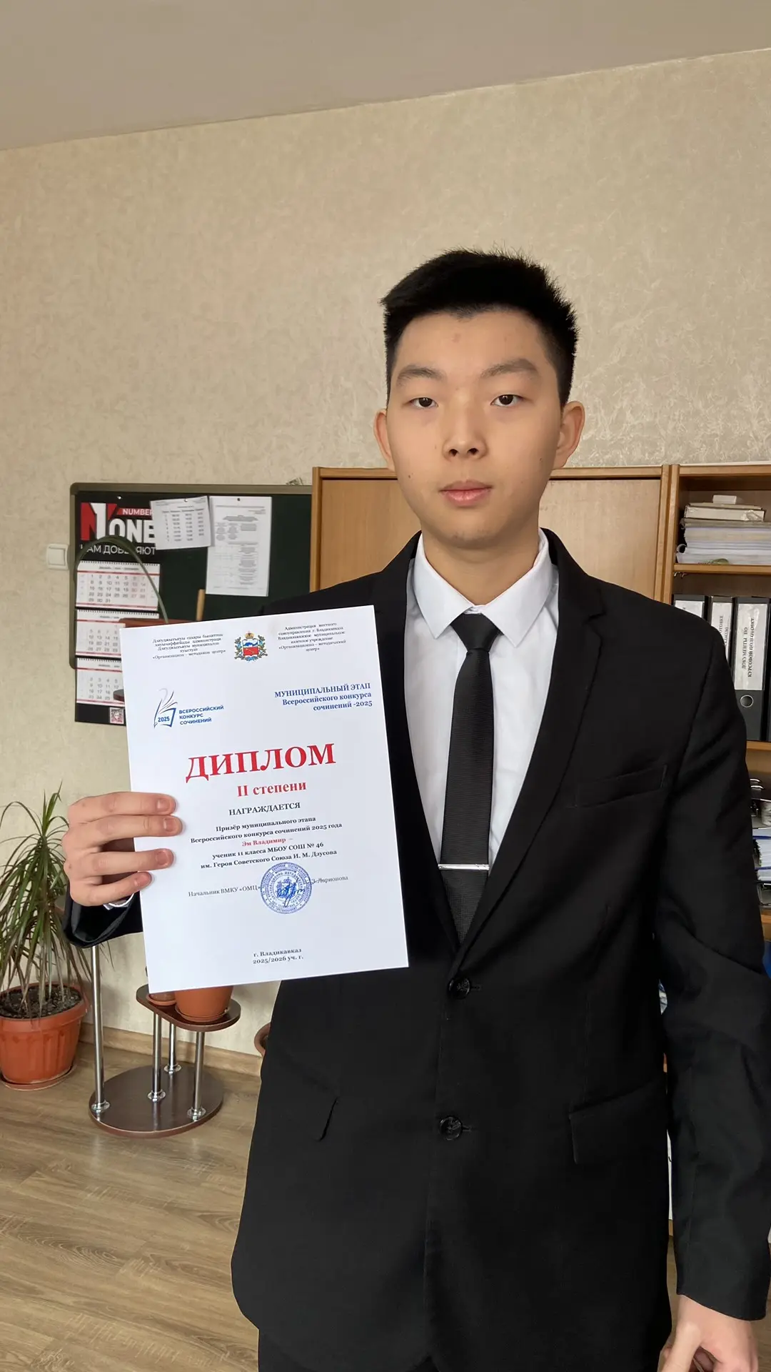 🏅 Эм Владимир, 11 «Б» — Призер муниципального этапа Всероссийского конкурса сочинений 2025 года! Молодец, так держать! 💪🔥 Твоя аналитическая способность и умение выражать свои мысли ясно и убедительно заслуживают высокой оценки. Продолжай развивать свои навыки и стремиться к новым вершинам!