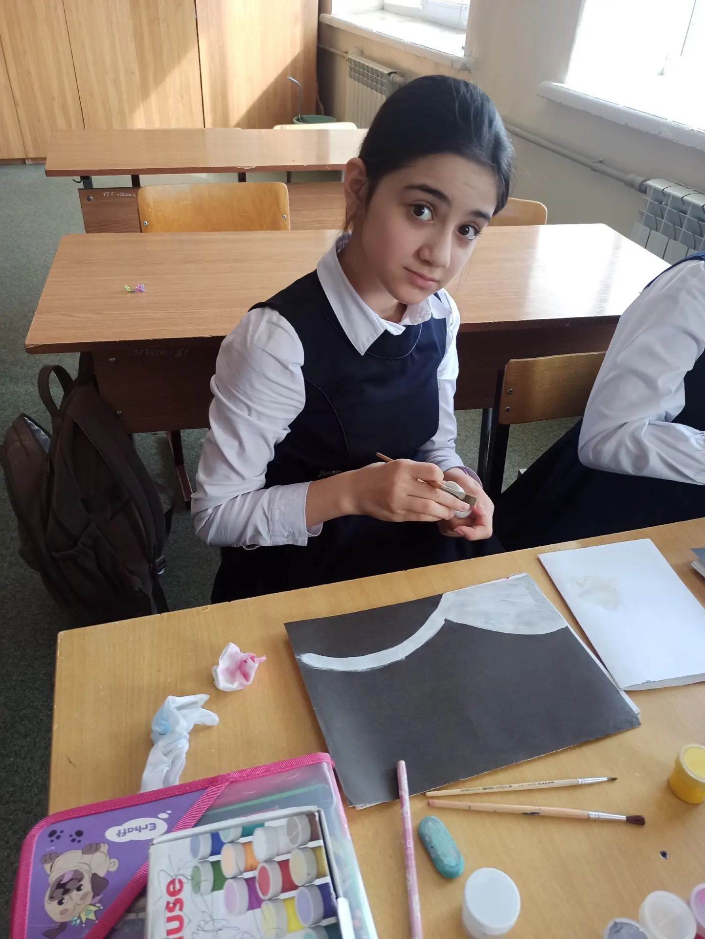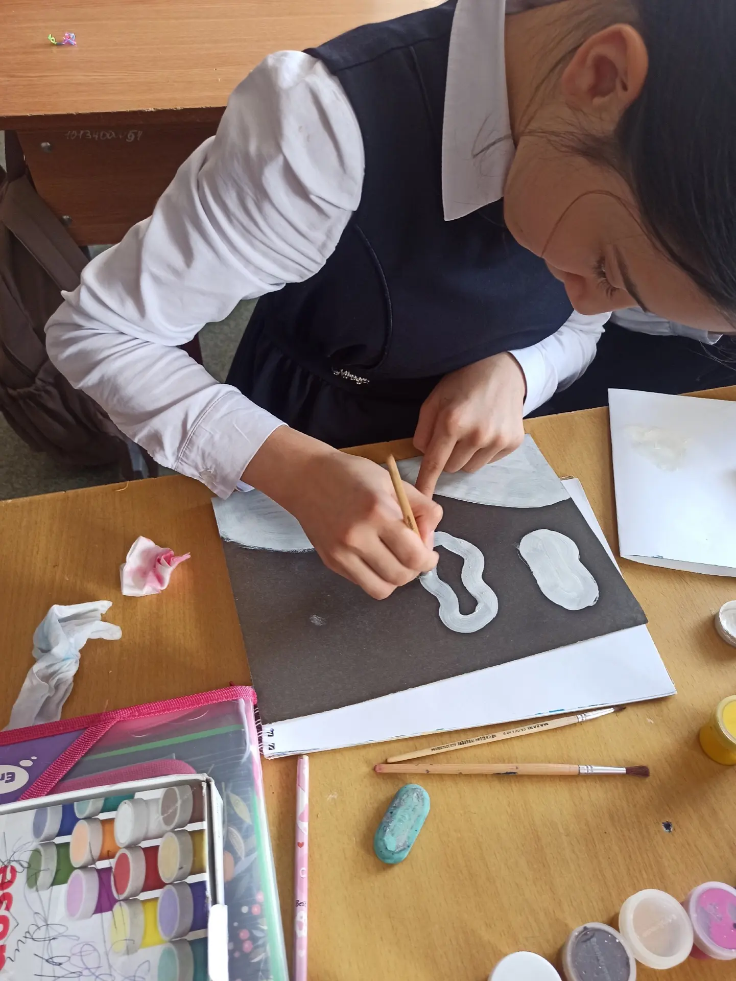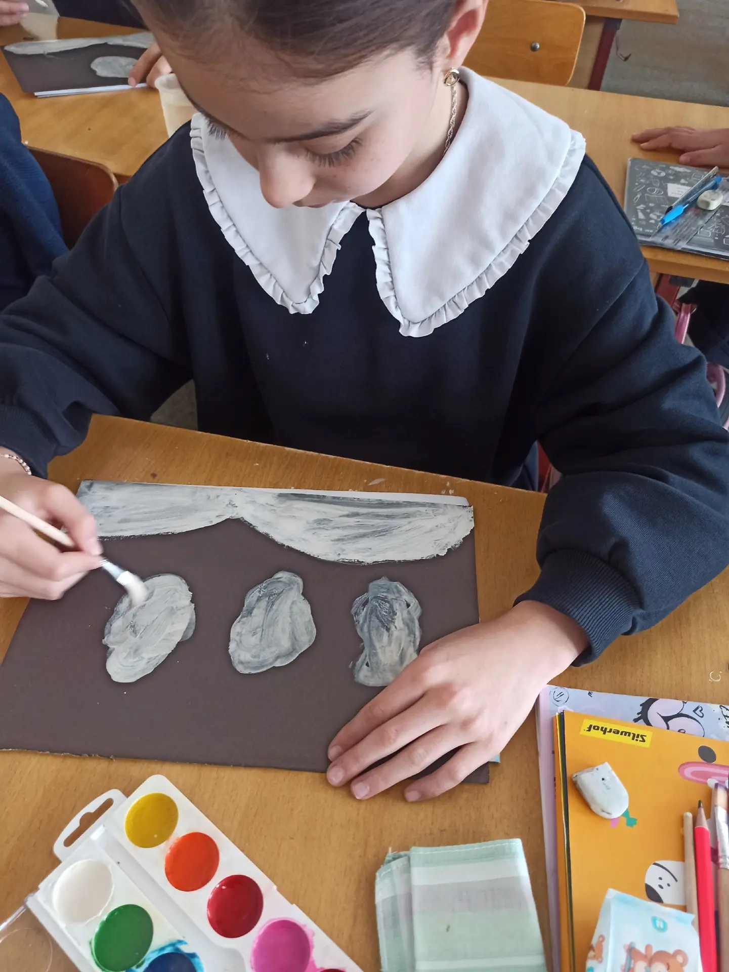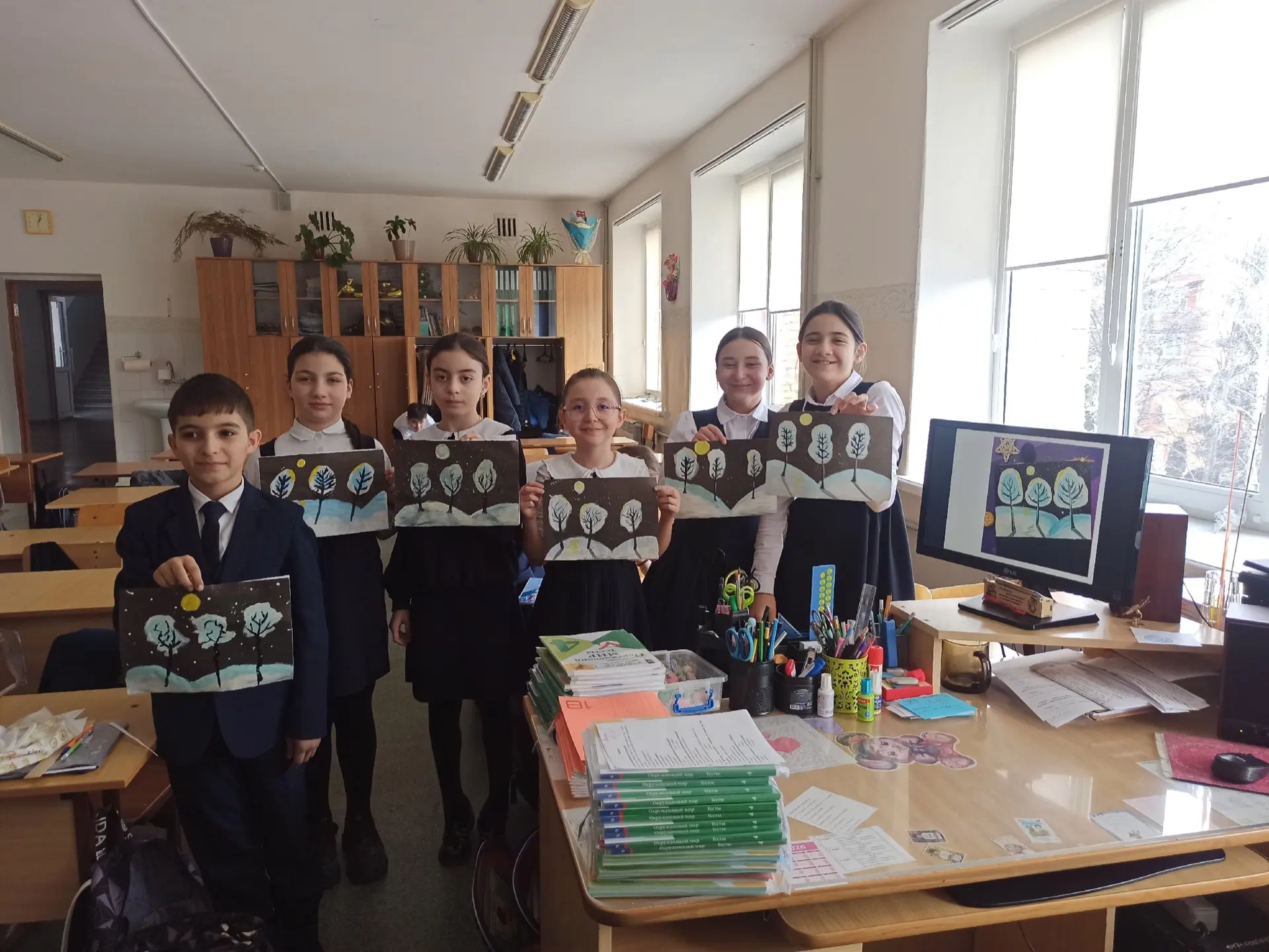 ❄️🎨 В 4 «Д» классе прошёл урок рисования на тему «Зимний пейзаж»! 🌨️🖌️ Цель урока достигнута – все ребята успешно справились с заданием, работы получились красивые и аккуратные! ✨👏