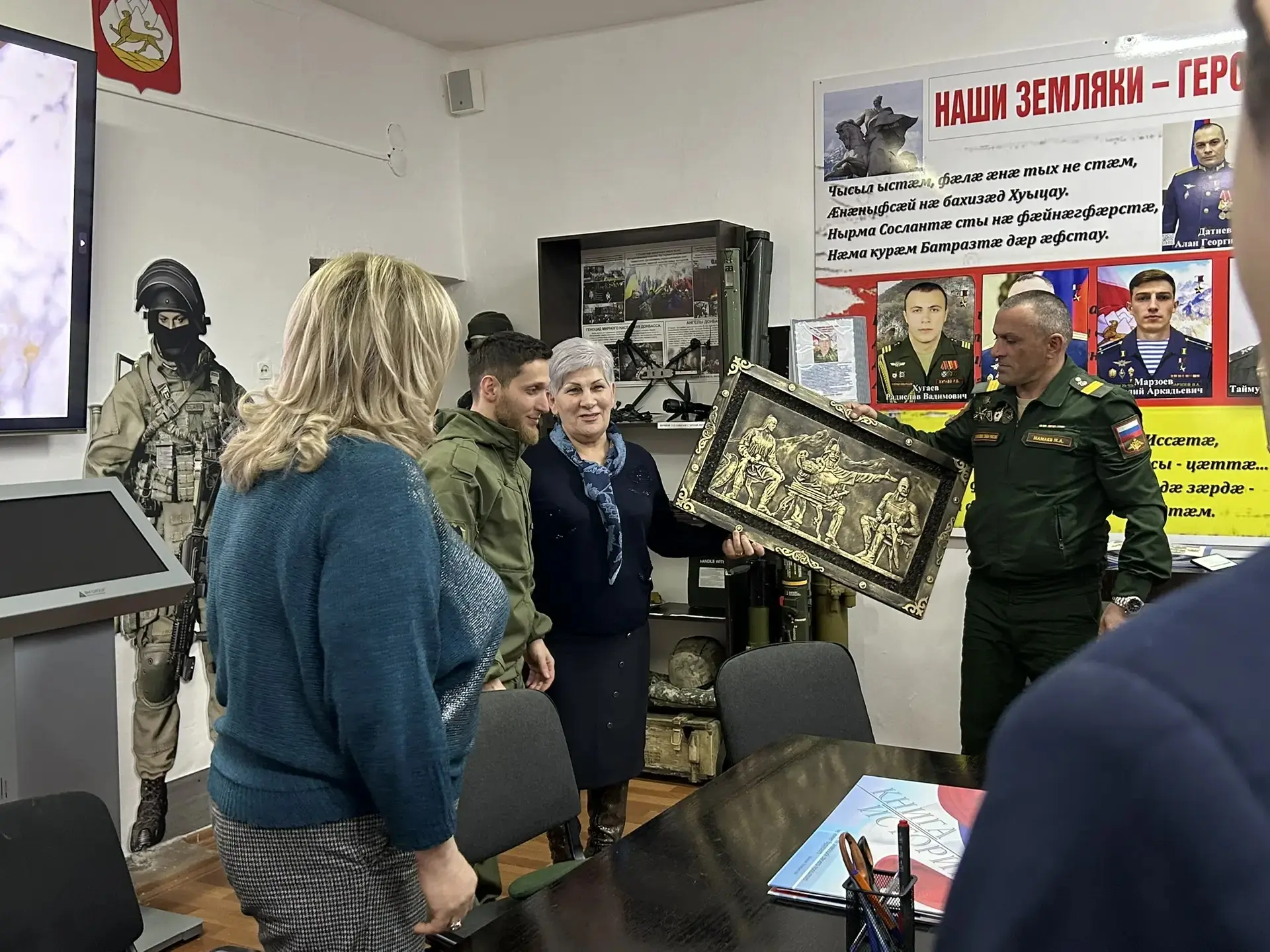 💬По словам автора, проект направлен на сохранение памяти и увековечения подвига. В торжественной обстановке художник передал портреты Олега Мамиева и Эдуарда Байцаева семьям погибших героев.