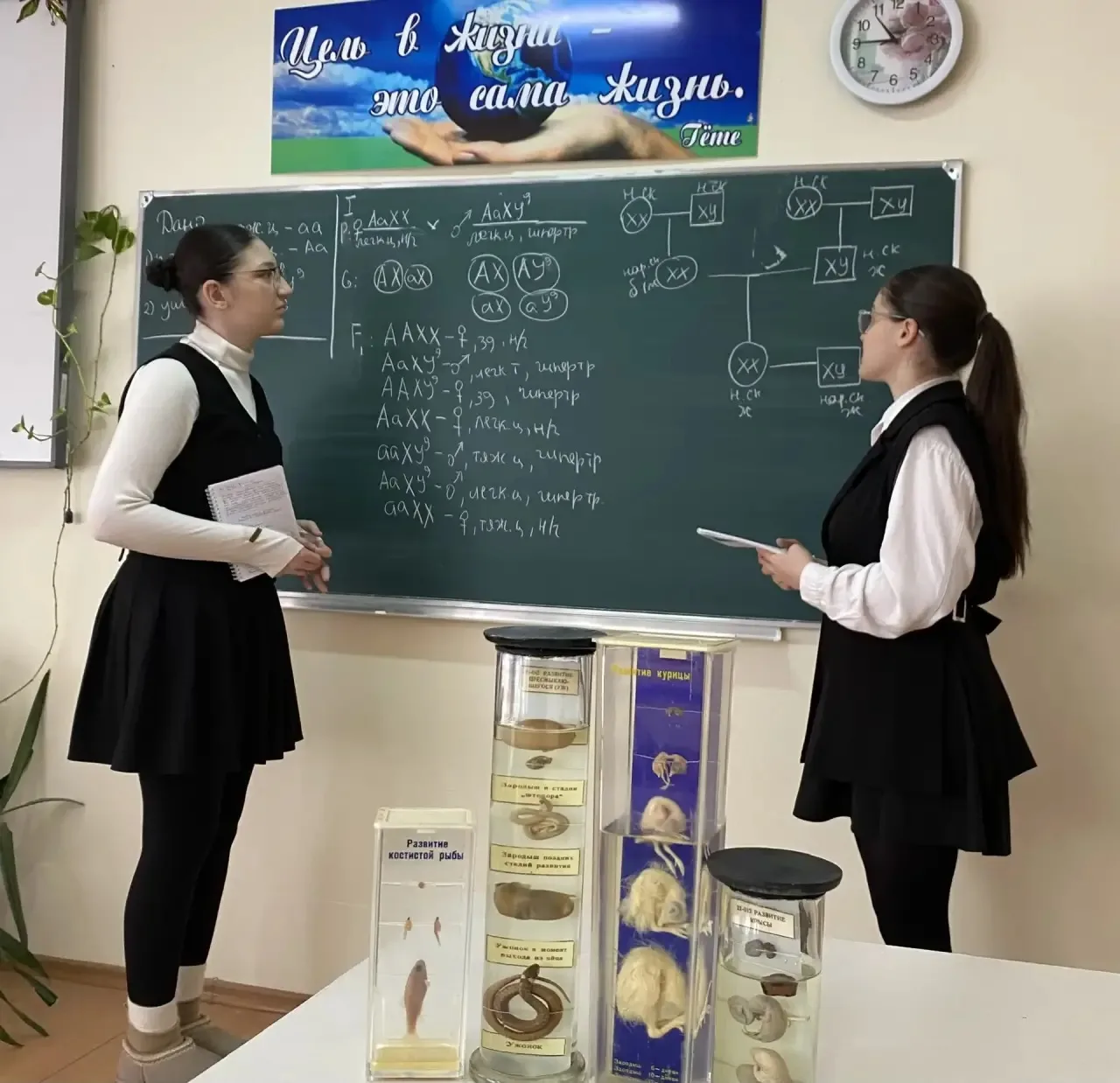 🌿🔬 Сегодня на уроке биологии в 11 А классе естественно-научной группы под руководством Олейник С.В. ребята активно решали генетические задачи и проводили лабораторные наблюдения по теме «Строение и развитие живых организмов» с использованием увеличительных приборов! 🧬✨