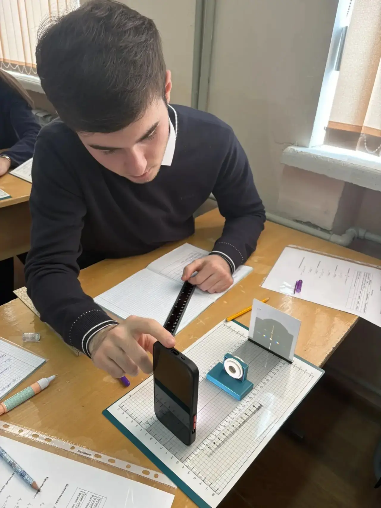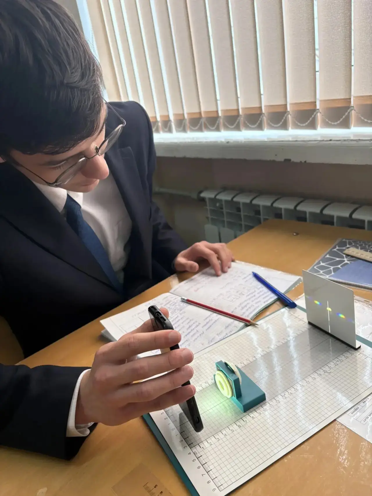 ✨ В 11 А классе в группе Инженерно-технического профиля прошла увлекательная лабораторная работа по физике — «Измерение длины световой волны»! 🌈🔬 Ученики не просто повторяли теорию, а самостоятельно проводили эксперимент, используя дифракционную решётку. Они измеряли угол дифракции и рассчитывали длину световой волны с помощью формул, что позволило им на практике увидеть, как физика работает в реальной жизни.