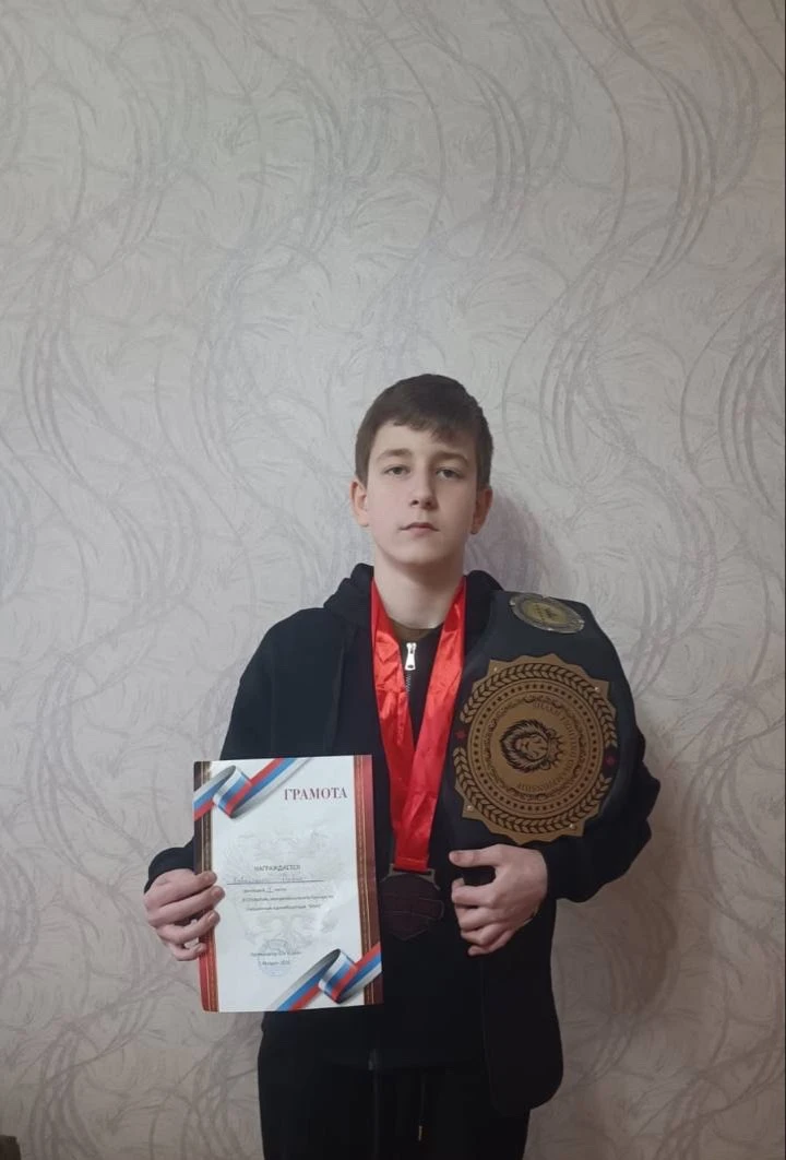 🥇 Коваленко Давид, ученик 7 «Г», завоевал чемпионский пояс на соревнованиях по ММА! Так держать, чемпион! 🥋🔥