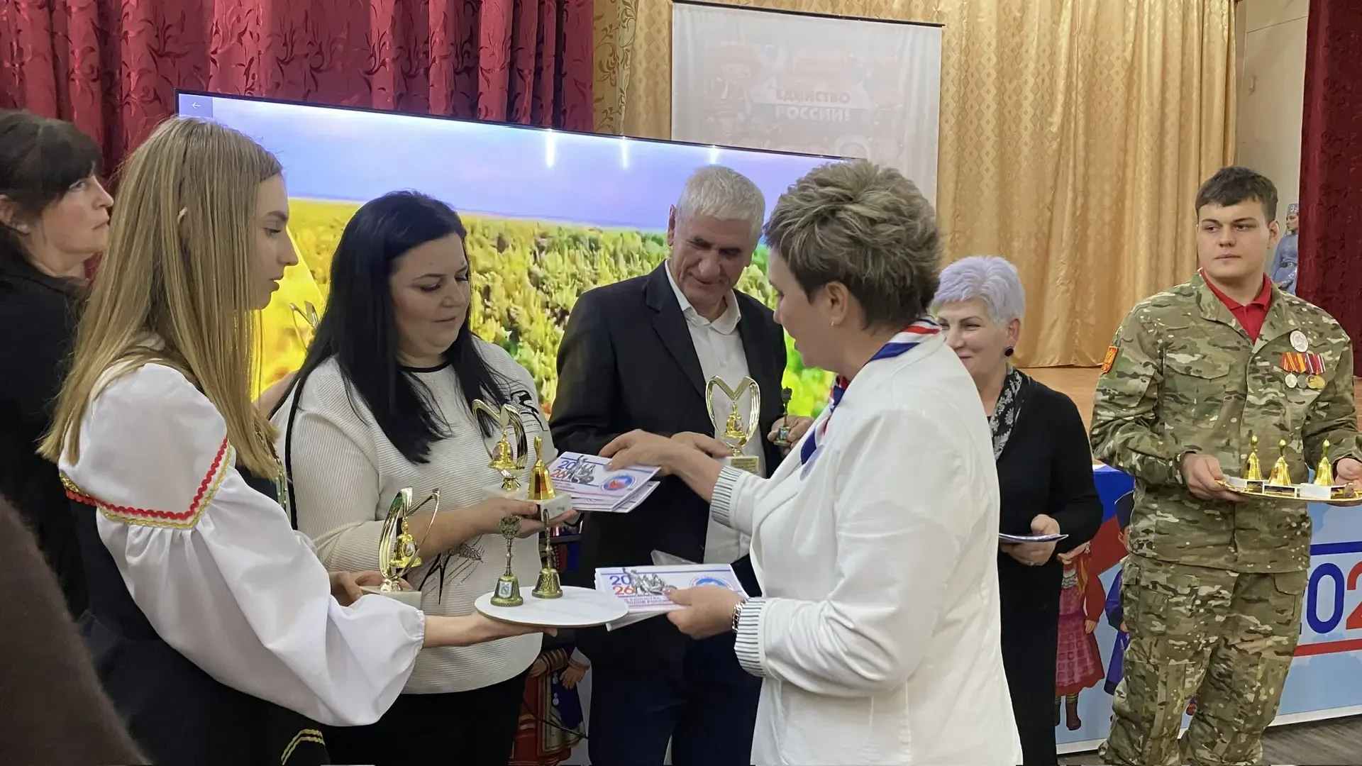 19 февраля 2026 года по приглашению директора школы №46 г. Владикавказа Газзаевой Валентины Григорьевны делегация МКОУ «СОШ с. Прималкинского» во главе с директором Шкуратовой Ириной Васильевной приняли участие в торжественном мероприятии, посвященном открытию Года единства народов России.