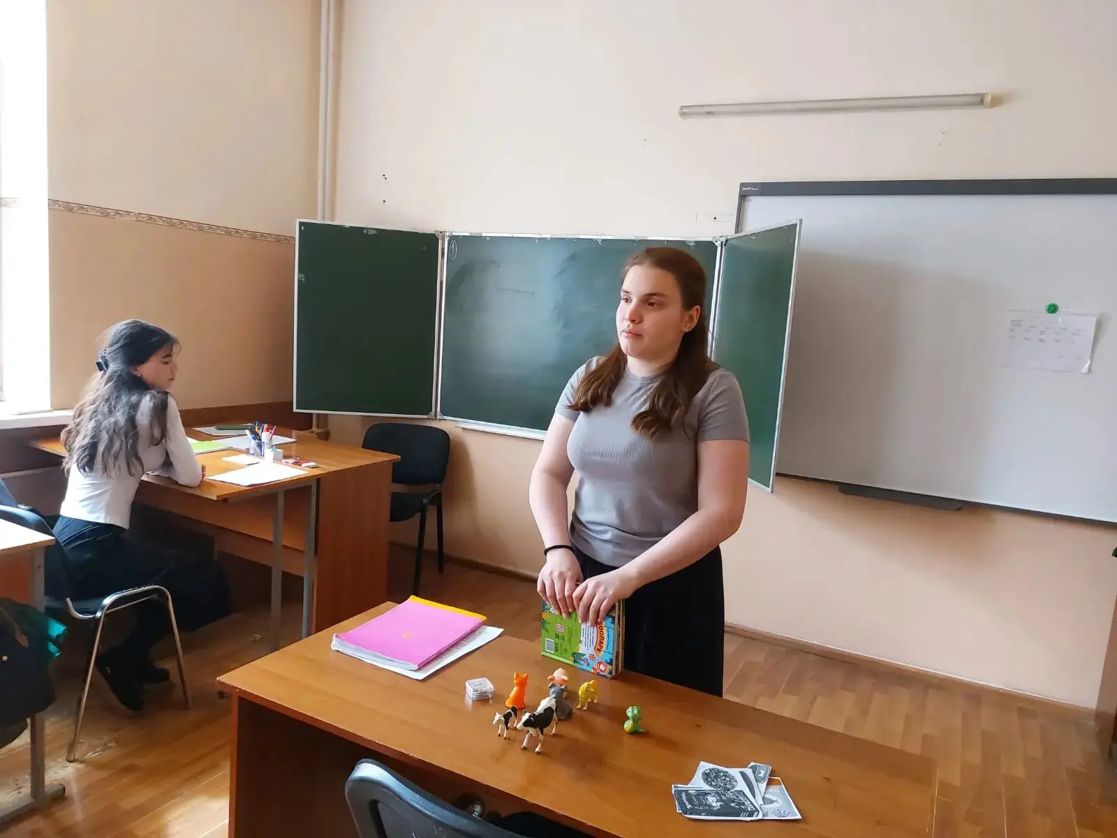 На площадке, максимально приближенной к реальной школьной среде, участники отработали ключевые элементы заданий: фрагмент урока, работу с методическими материалами, взаимодействие с «учениками».