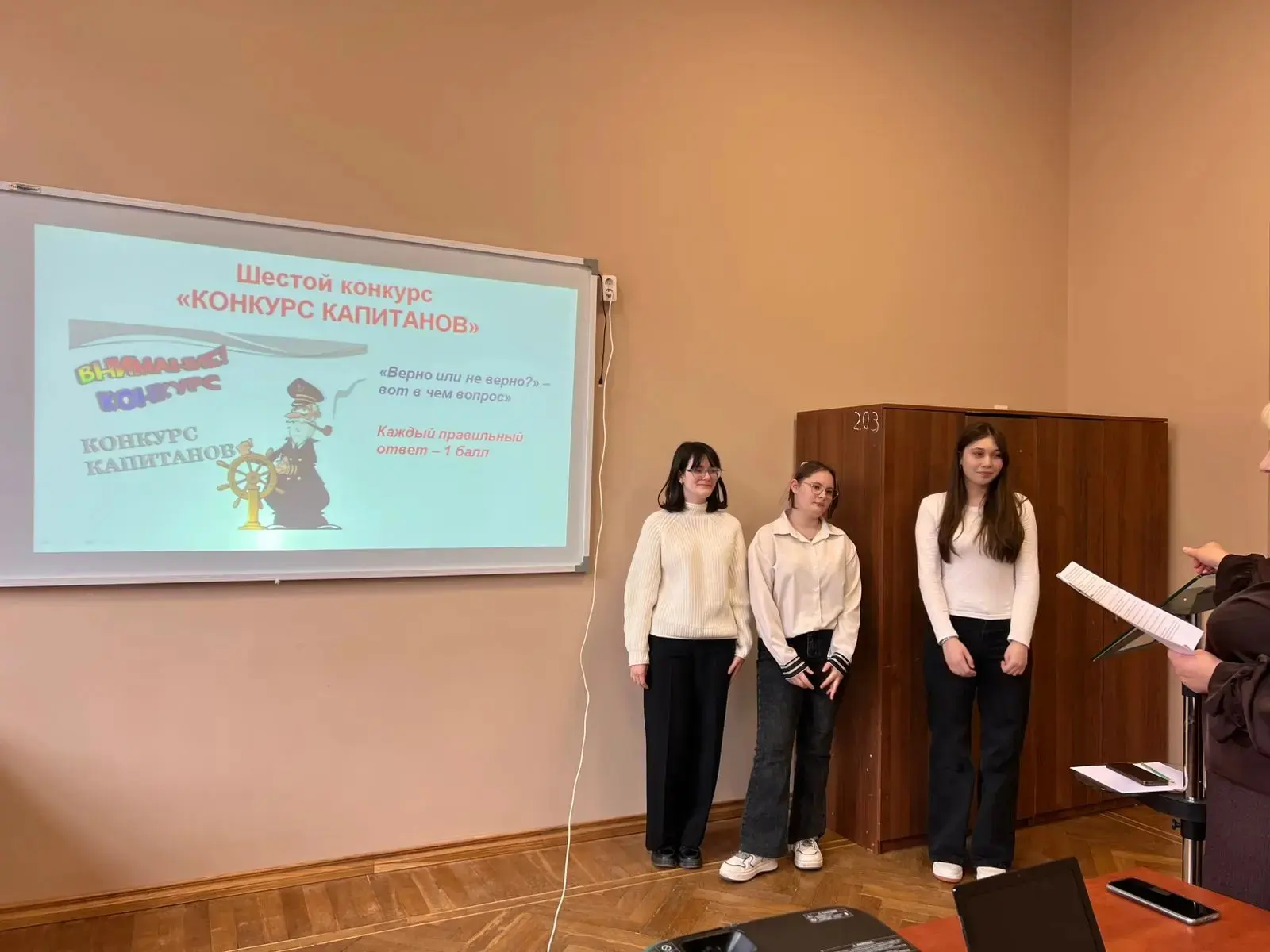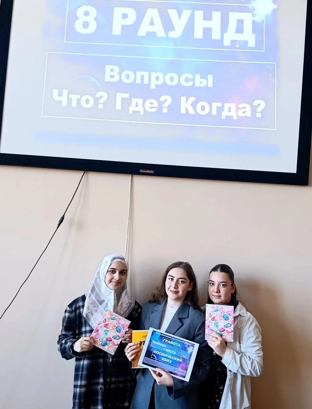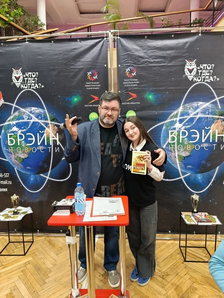 📕За правильный ответ на один из них Сайора Цалиева получила приз из рук ведущего.