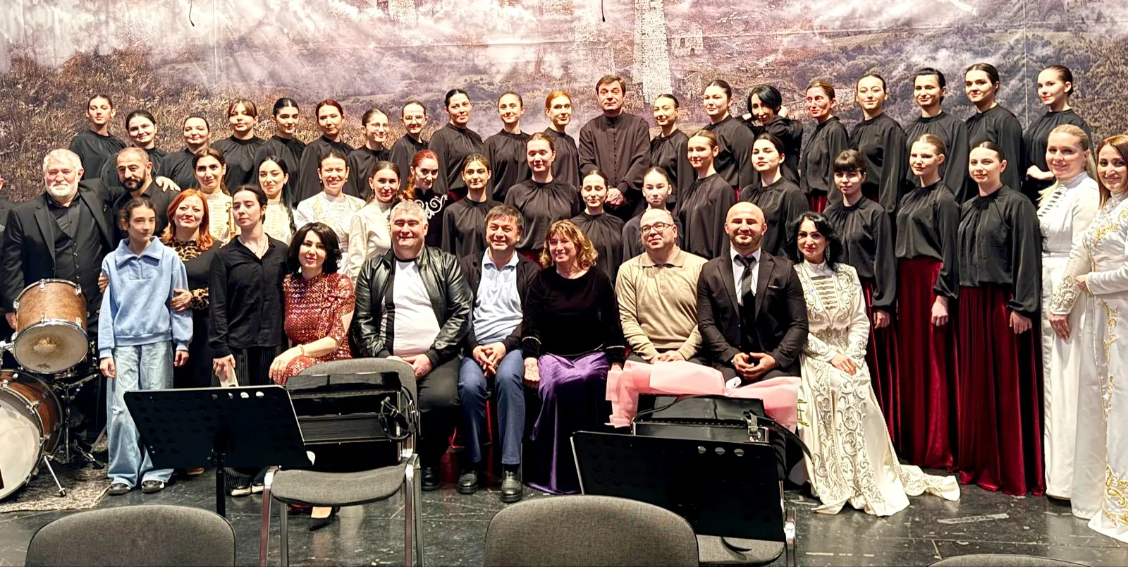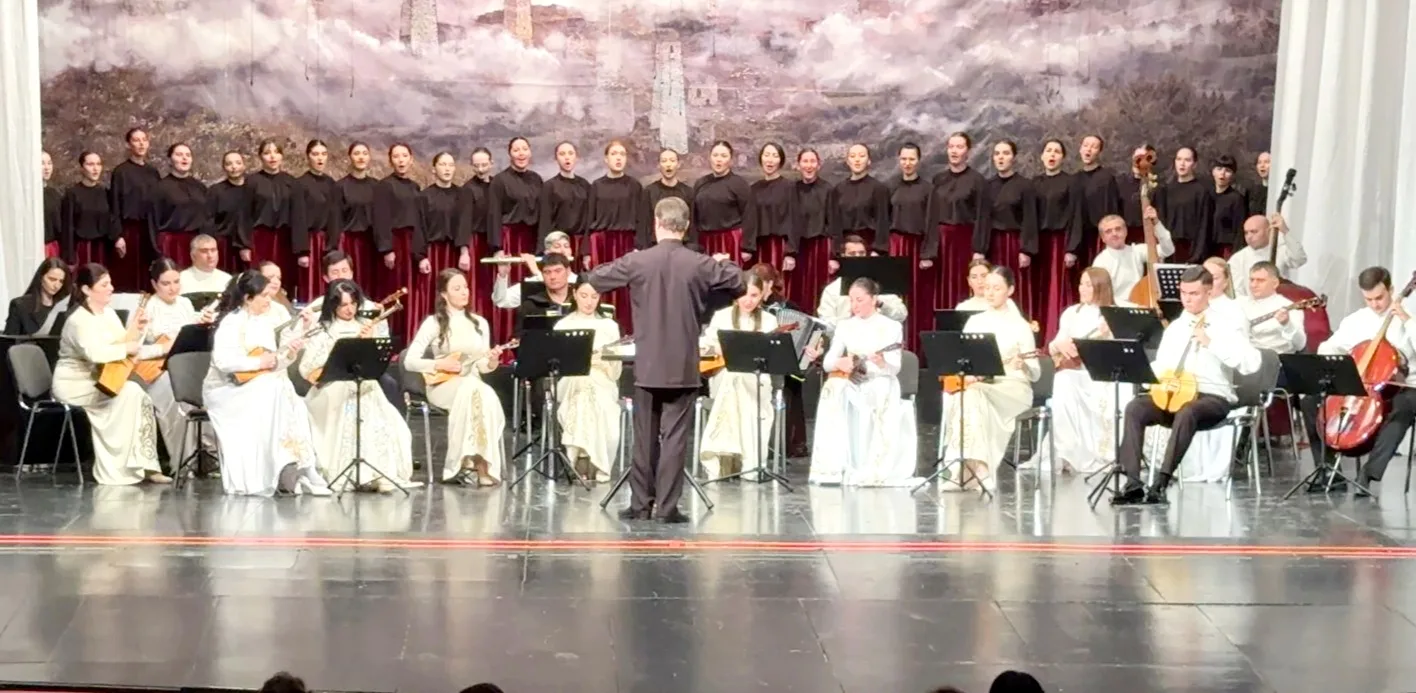 Зрители услышали в едином чувстве, пропущенном каждым исполнителем через собственное сердце хоровую миниатюру Аркадия Ачеева «В ауле». Заключительным аккордом прозвучала «Песня моя, Иристон», в которой хор имел возможность петь под оркестровый аккомпанемент, что было чудесной возможностью студентам познакомиться с особенностями ансамблевого звучания инструментов народного оркестра.