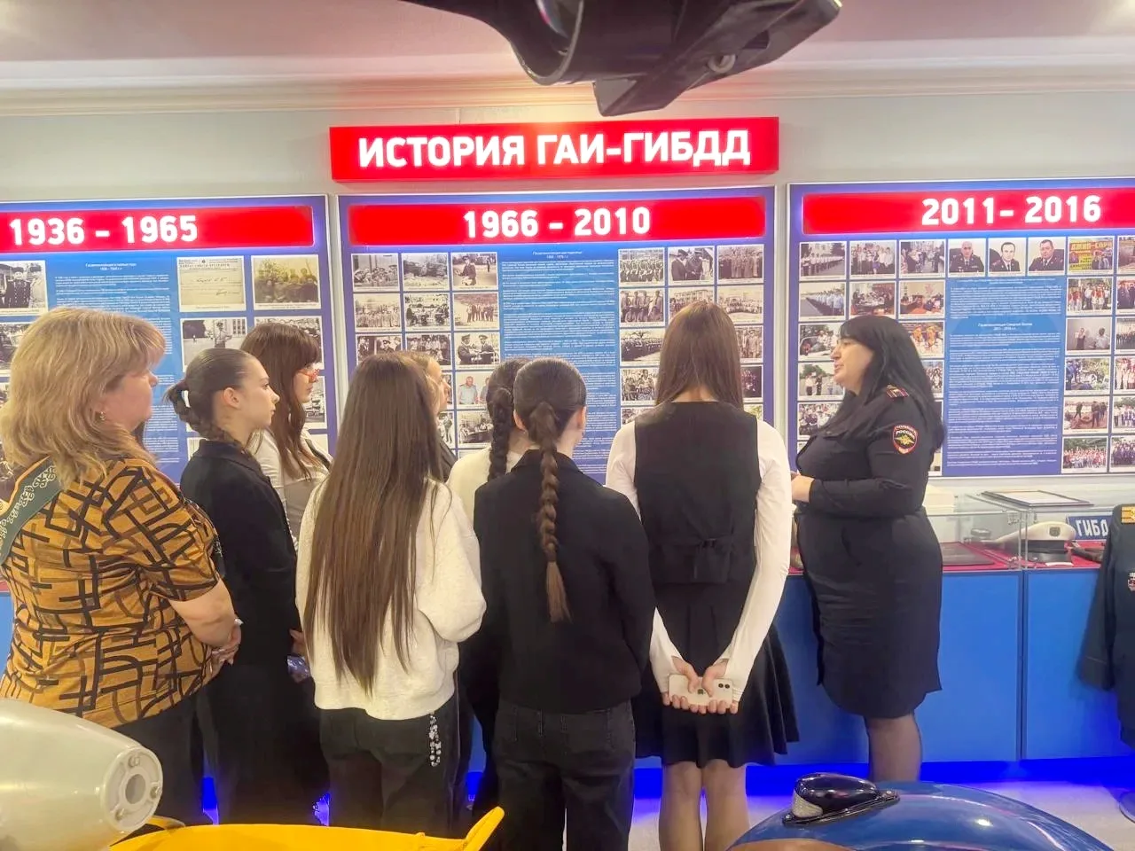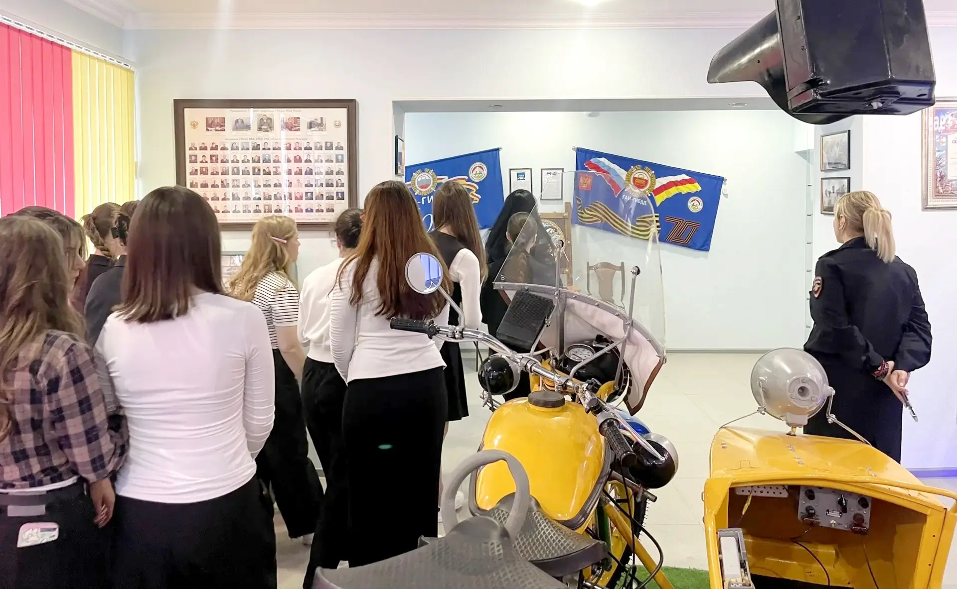Гости ознакомились с экспозицией музея Госавтоинспекции, где им рассказали об истории создания службы, выдающихся сотрудниках, а также о герое Зауре Джибилове и его подвиге. Особое внимание уделили памяти сотрудников, погибших при исполнении служебного долга.