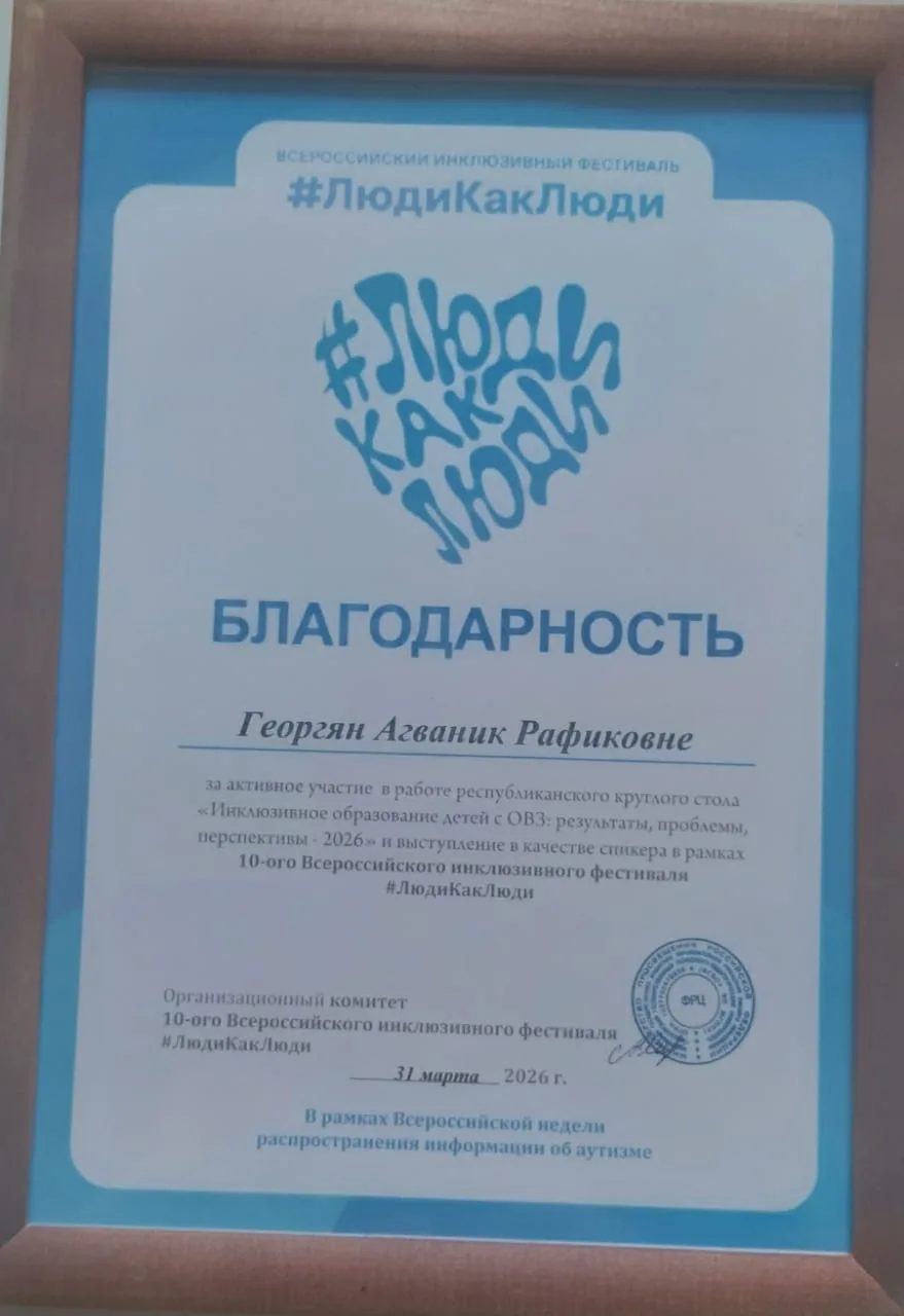 📌 Преподаватель ПЦК дошкольного образования А.Р.Георгян приняла активное участие в Республиканском круглом столе «Инклюзивное образование детей с ОВЗ: результаты, проблемы, перспективы-2026» и выступила в качестве спикера в рамках 10-Всероссийского инклюзивного фестиваля #ЛюдиКакЛюди, организованным ГБУДО «Республиканский дворец детского творчества им. Б.ЕКабалоева».