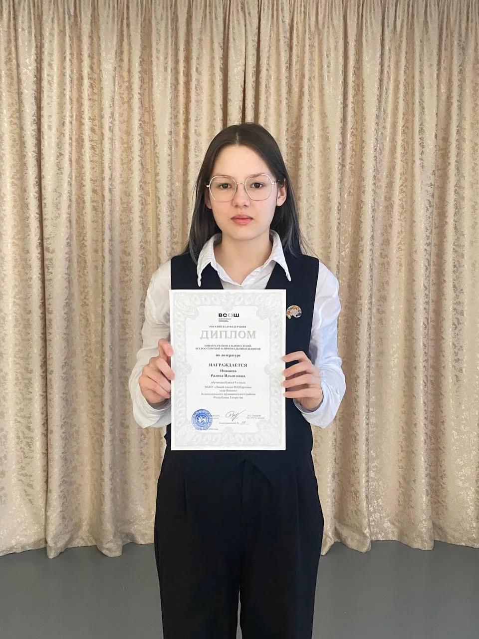 Ученица 9 "Б" класса Имашева Ралина стала призёром регионального этапа Всероссийской школьной олимпиады по литературе, подготовила её учитель русского языка и литературы Гайворонская Е. Н. Желаем Ралине и её наставнику дальнейших побед! 🥳