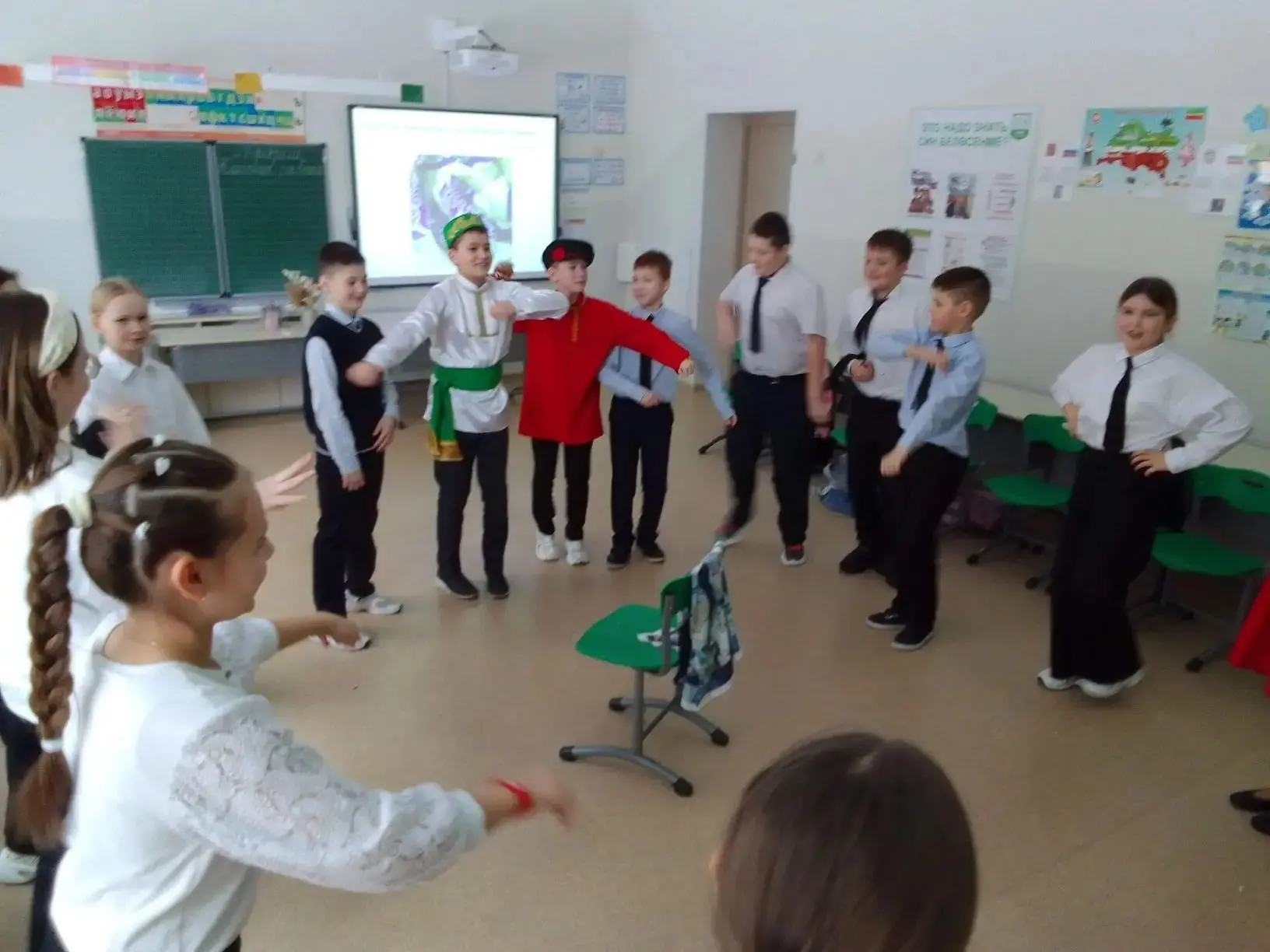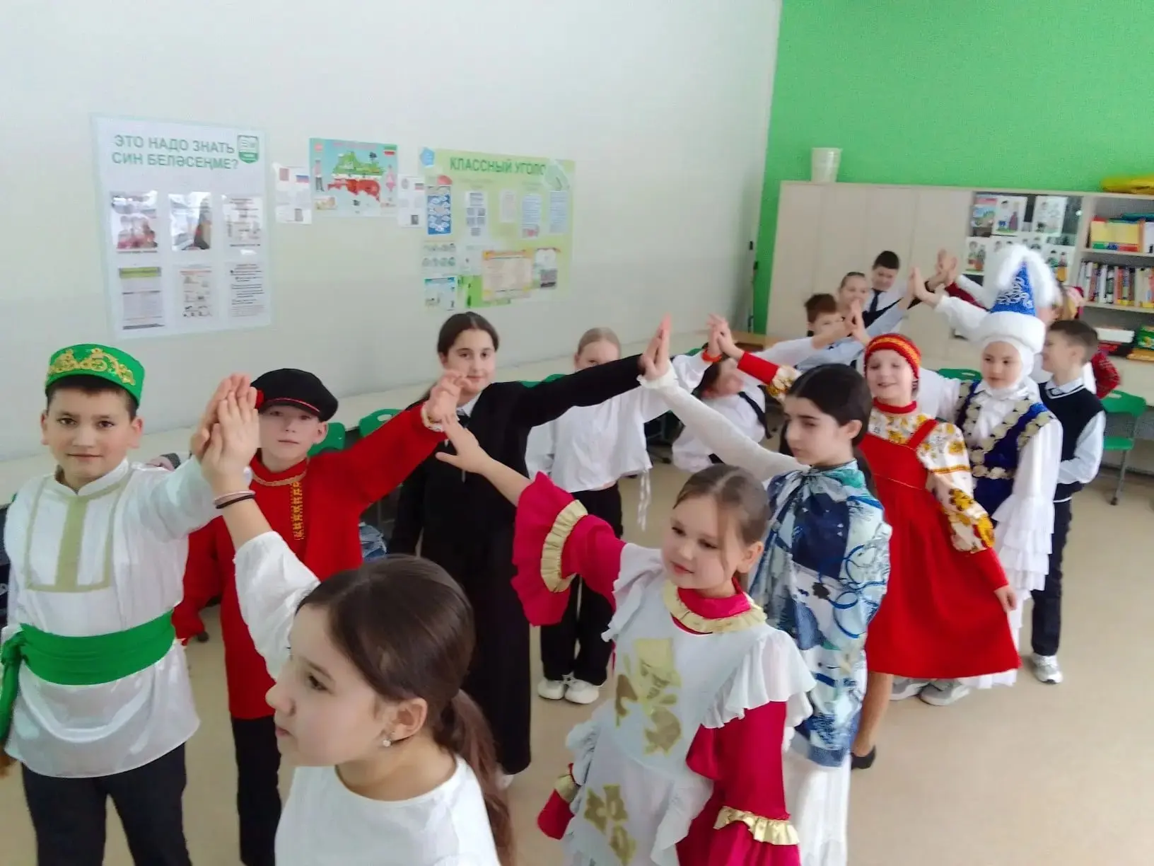 На мероприятии "Игры дружбы" классный руководитель Хамидуллина Л. И. и активисты класса познакомили одноклассников с народными играми: русская - "Жмурки", татарская - "Агыйдел", башкирская - "Нитка и иголка", чувашская - "Змеиный хвост", аварская - "Подними платок".👏
