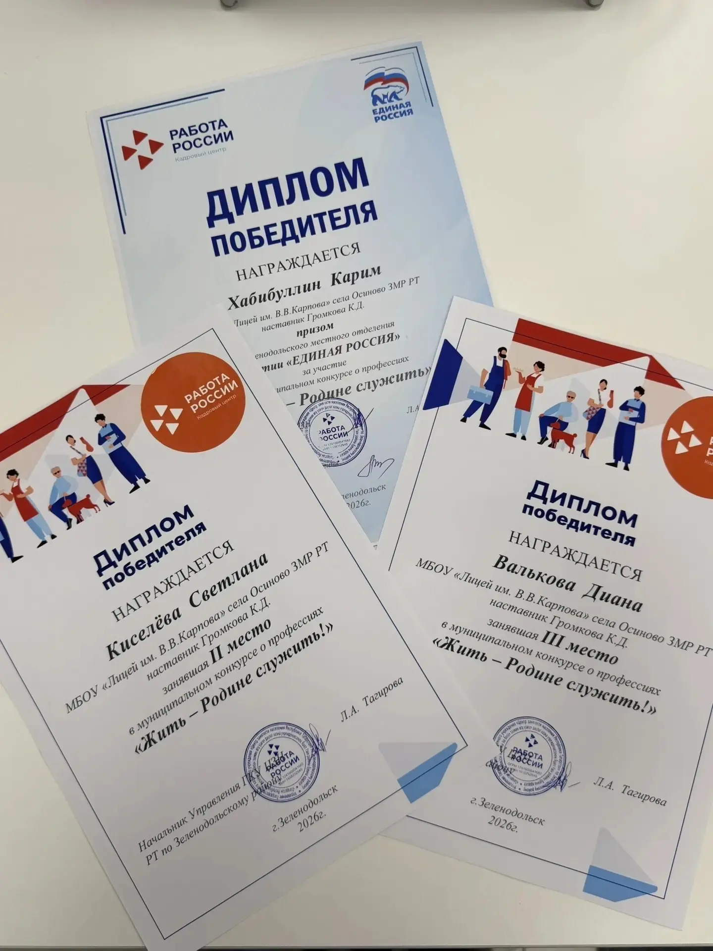 Ребята получили заслуженные награды в кадровом центре г. Зеленодольска «Работа России». На церемонии награждения присутствовали почётные гости: