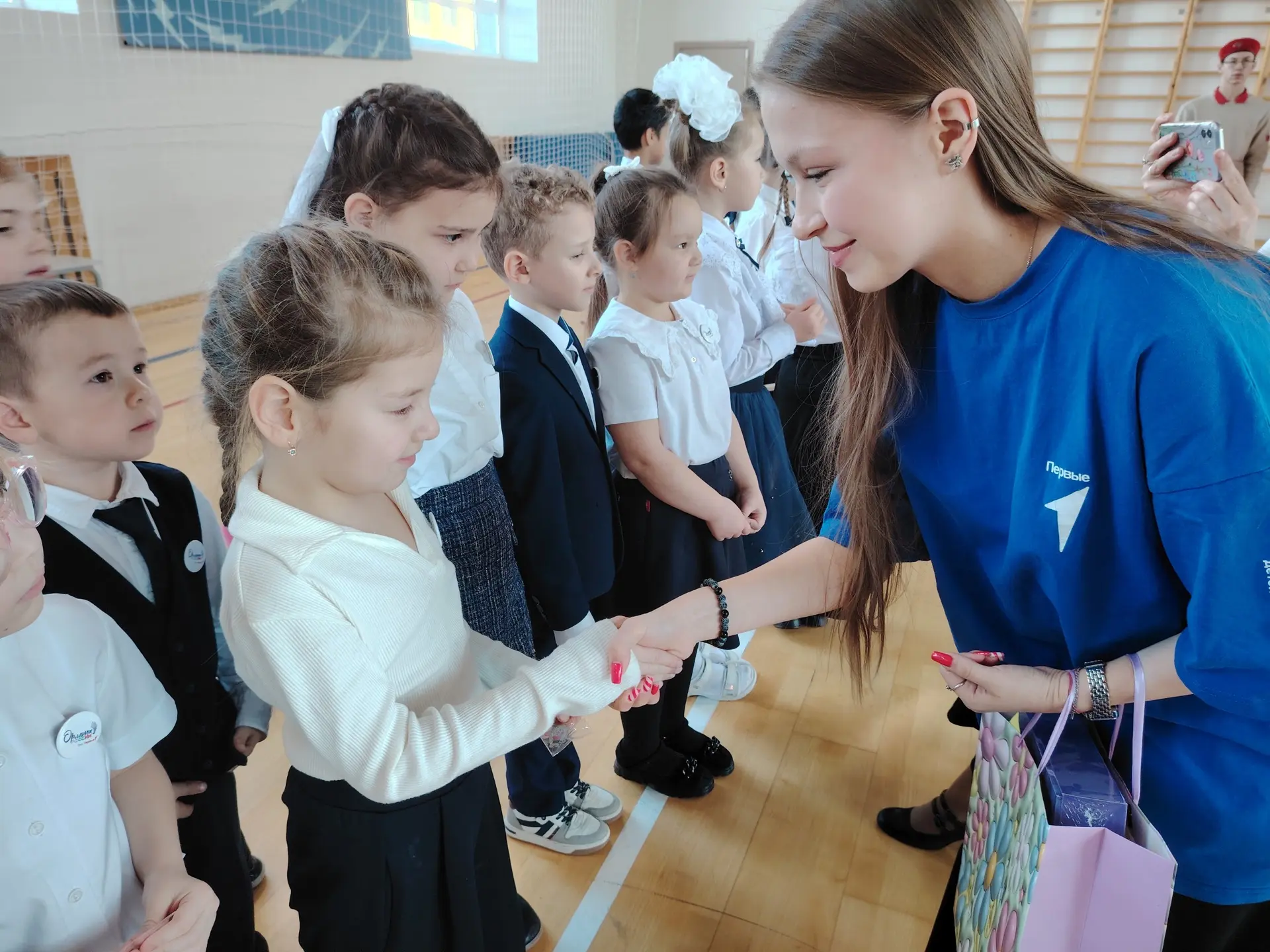 В этот знаменательный день наставники (старшеклассники) прикрепили первоклассникам значки орлят, как символ принадлежности к содружеству "Орлята России", и значки-барсики - талисман "Движения первых" в Республике Татарстан.