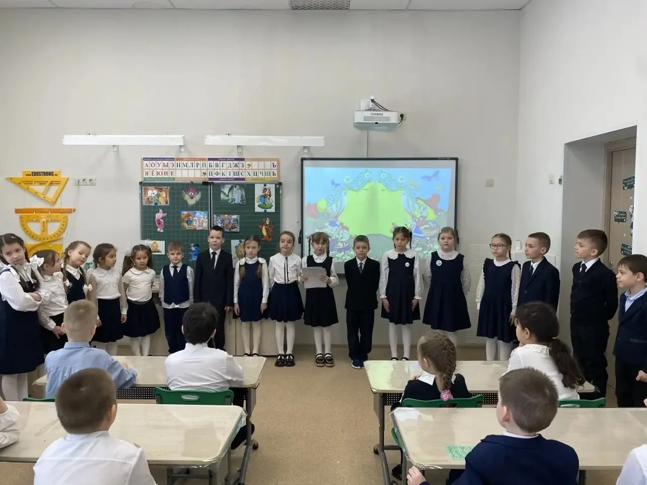 На празднике царила атмосфера радости и гордости. Дети читали стихи, пели песни, отгадывали загадки и даже встречали сказочных гостей, которые проверяли, готовы ли наши ученики попрощаться с букварем.