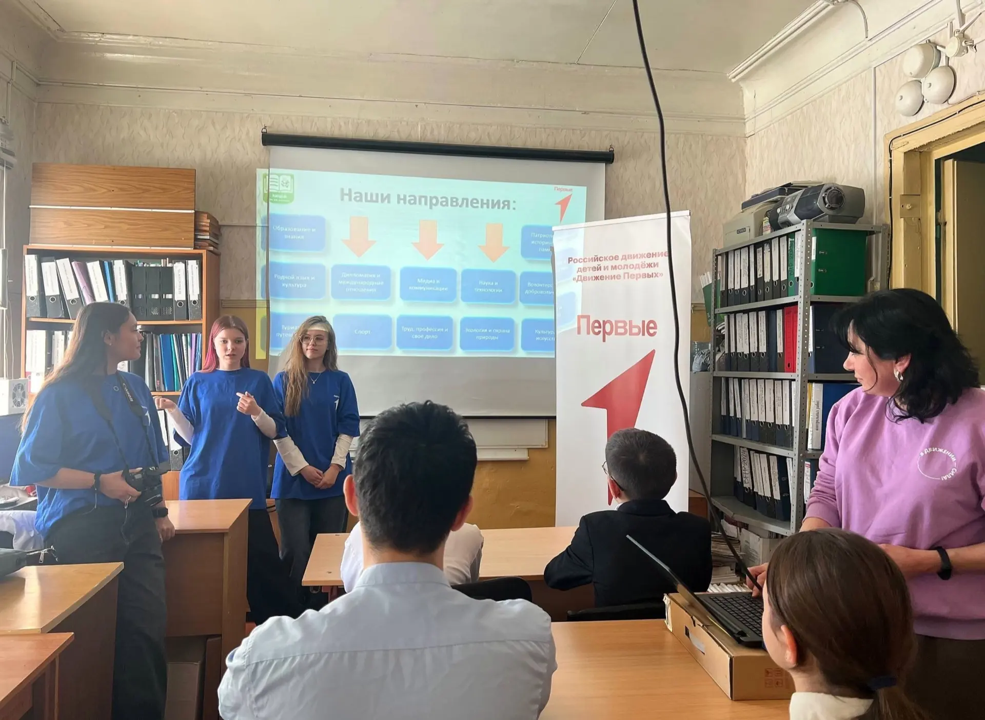 Затем наши активисты с гордостью рассказали о своей деятельности: о направлениях Движения Первых, которые реализуются в нашем лицее, о победах в конкурсах, активном участии во флагманских проектах и акциях Движения, работе Совета Первых и ярких мероприятиях .👍