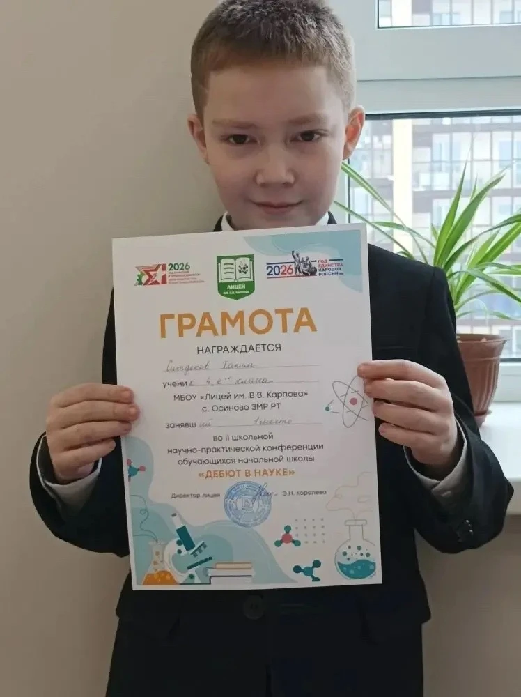 Ученик 4 класса Ситдеков Хаким принял участие в работе Всероссийского (с международным участием) конкурса научных исследований «Лобачевский. Прорыв» - 2026.