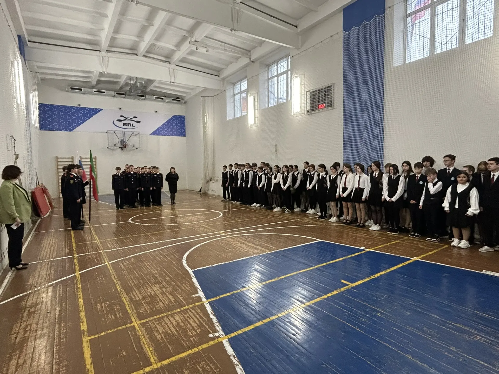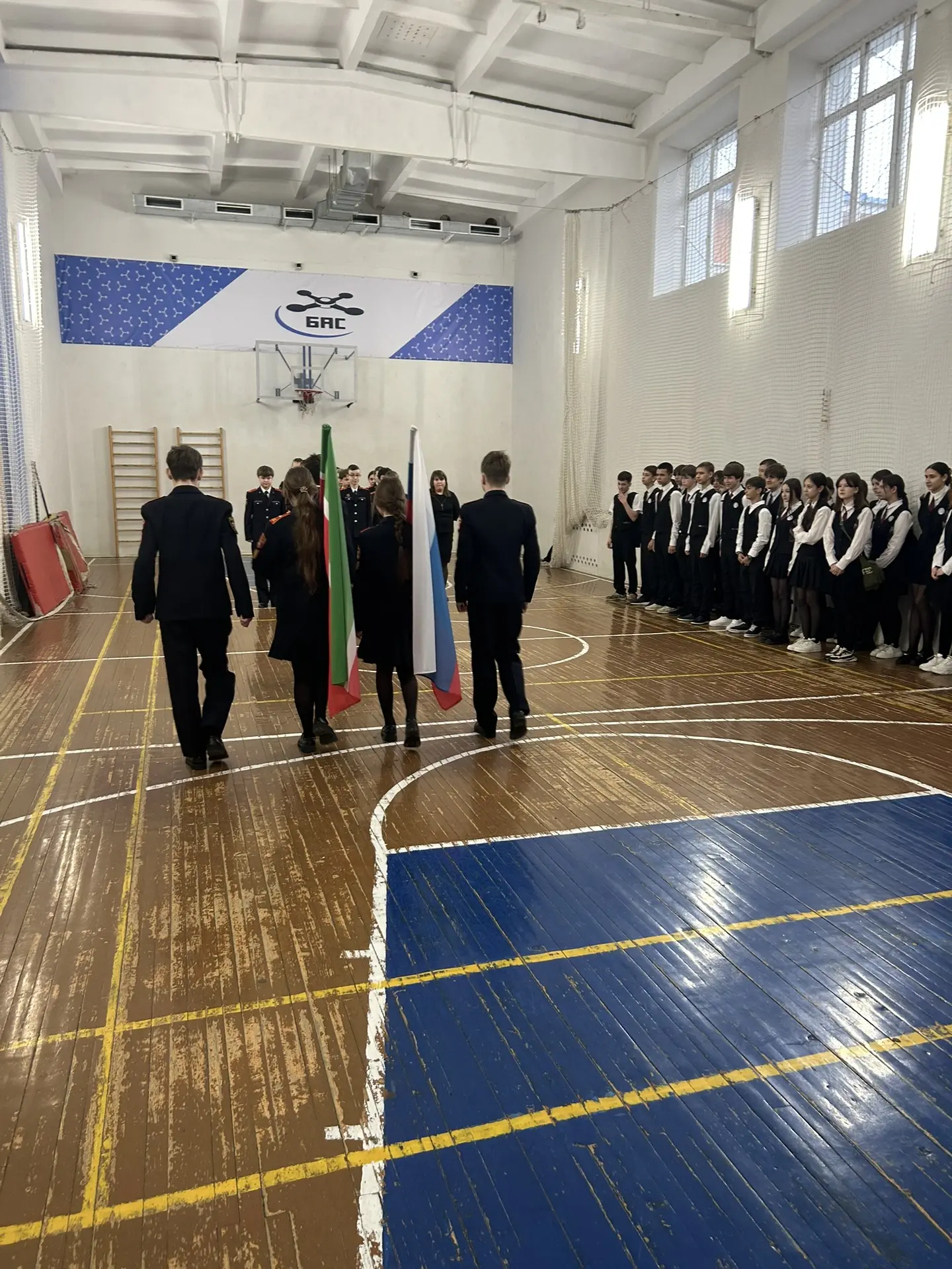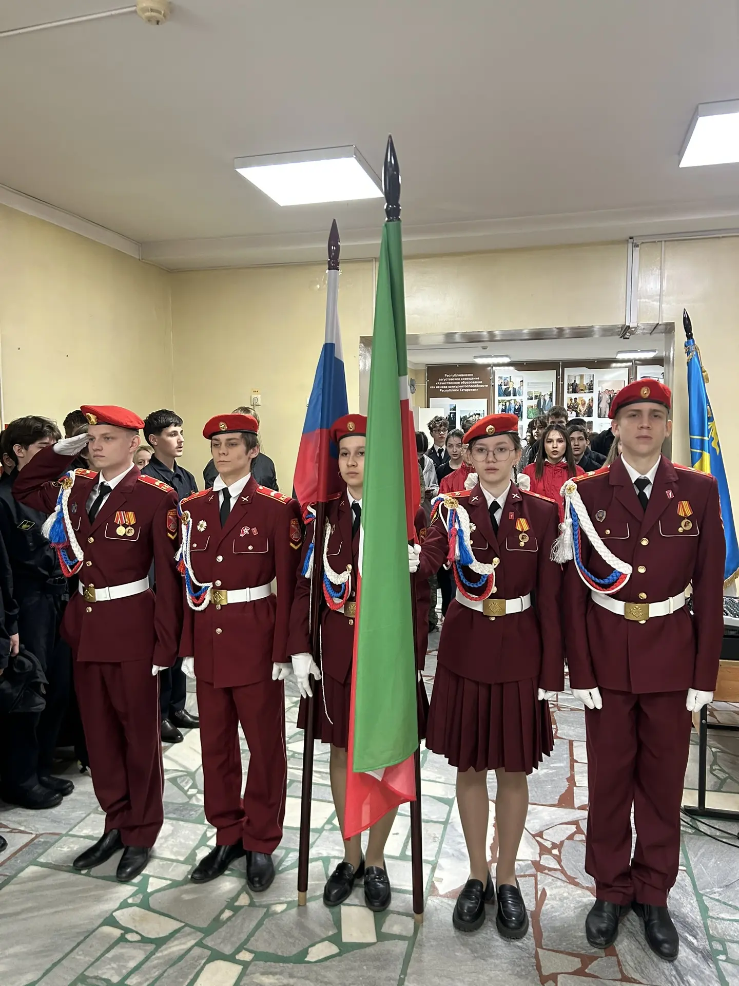 Традиционно линейка прошла с поднятием флагов и исполнения гимнов РФ 🇷🇺 и РТ.