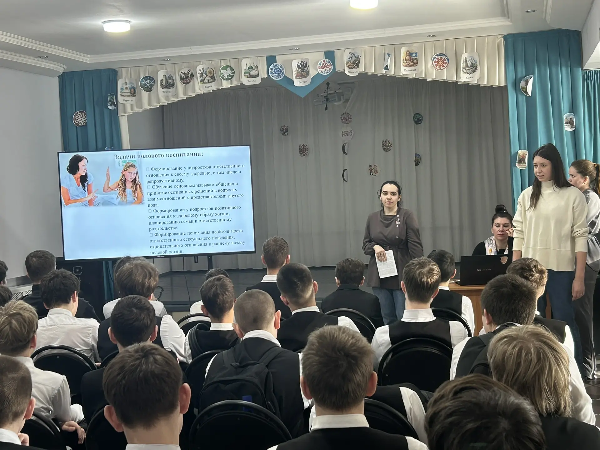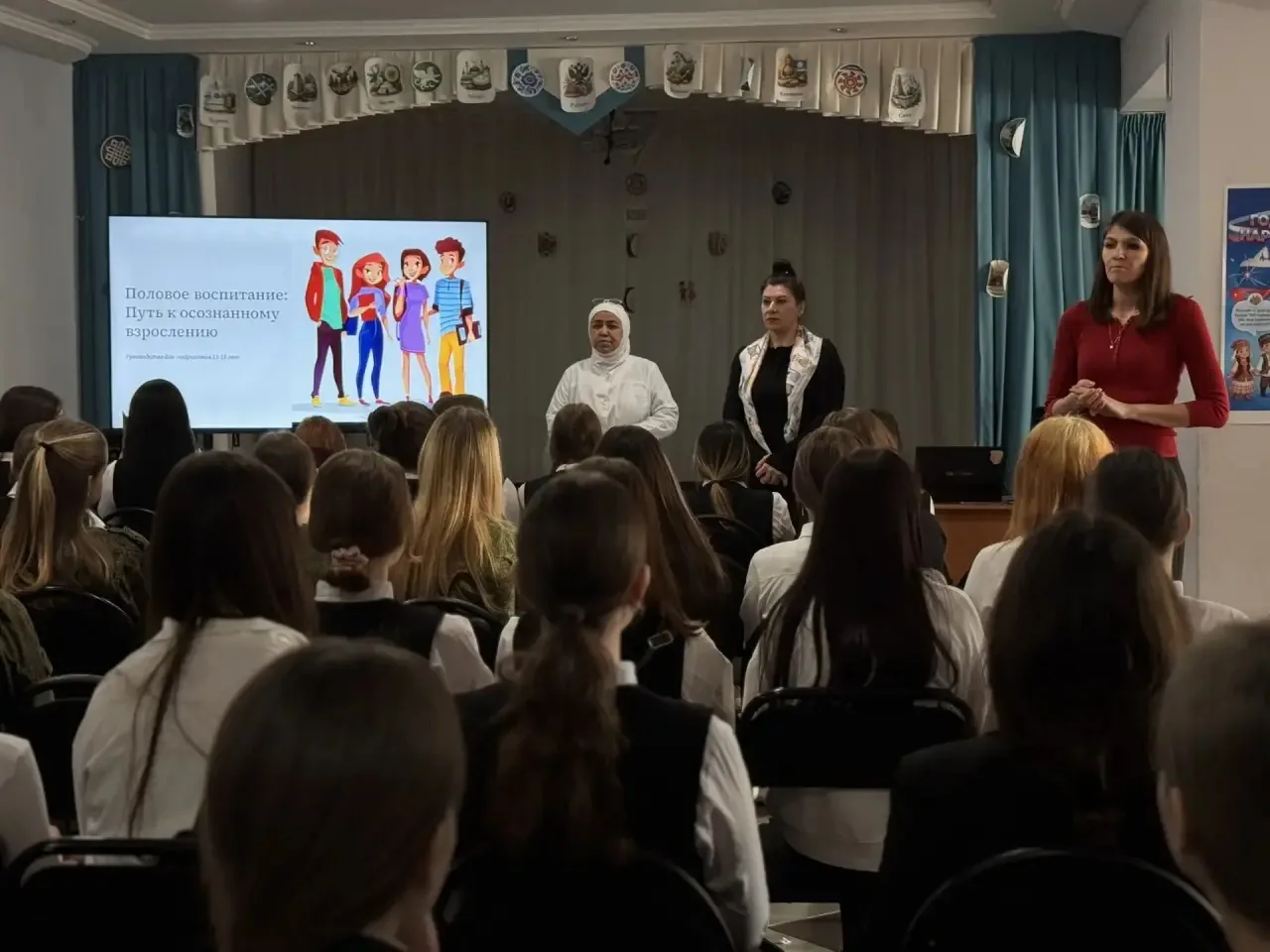 Юлдашева Г.Р., психолог школы Еланина О.А. и медсестра школы Ирода Турсункуловна. Также к встрече присоединились педиатры Столбищенской врачебной амбулатории Алсу Ирековна и Алия Рашидовна👩⚕️🧠 Они поделились с подростками ценными знаниями о здоровье, отношениях и важных аспектах полового воспитания.