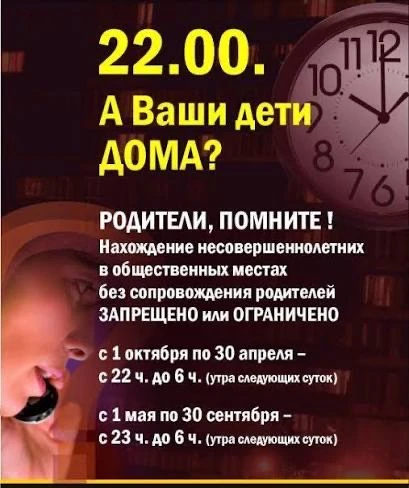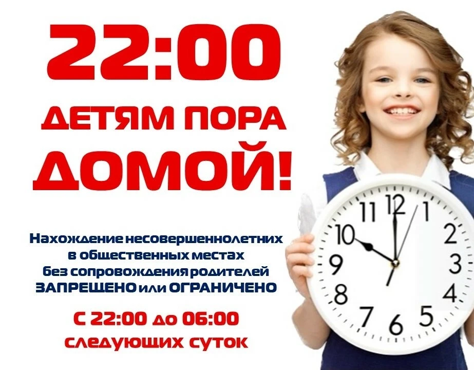И напоминаем,что нахождение несовершеннолетних после 22:00 в общественных местах без сопровождения родителей (законных представителей) запрещено 🚫
