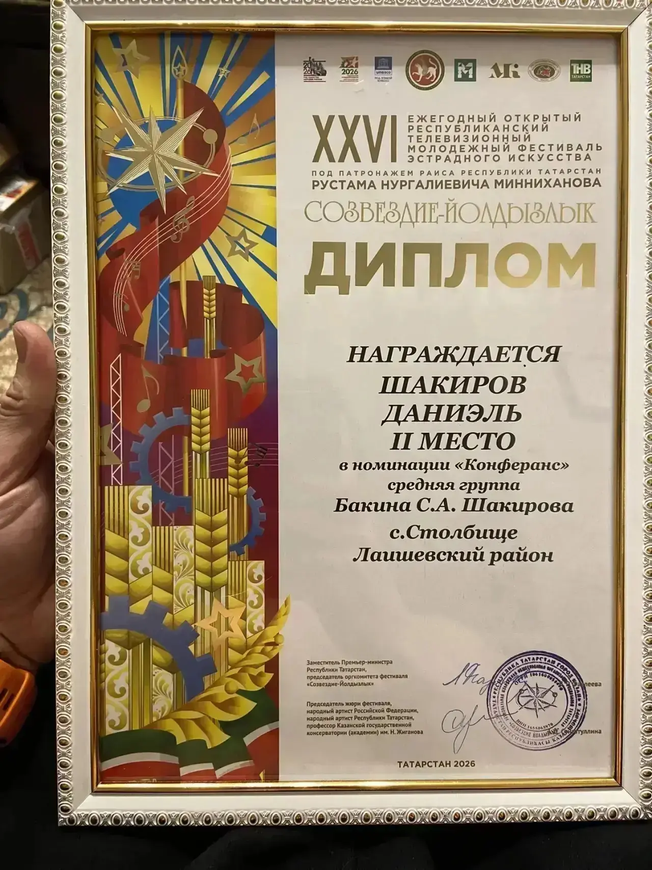 21 марта в Районном доме культуры города Лаишево состоялся гала-концерт зонального этапа XXVI республиканского телевизионного молодежного фестиваля эстрадного искусства «Созвездие-Йолдызлык-2026». Поздравляем Шакирова Даниэля и руководителя театральной студии «Вдохновение» Бакина Светлану Анатольевну с призовым местом!🥈👏👏👏Молодцы!💐💐💐