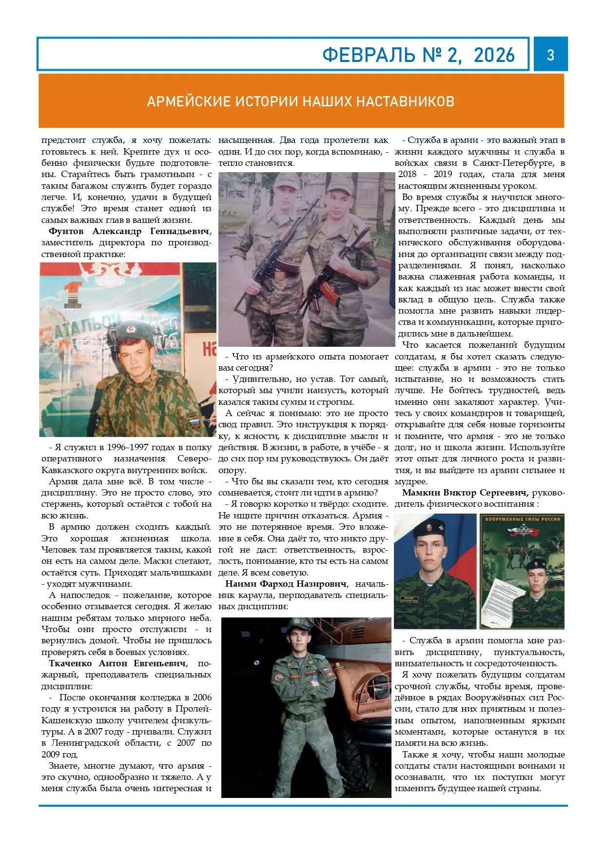 Армейский опыт — это особая страница в биографии наших педагогов. Служба закалила их характер, научила ответственности и умению принимать решения, что так важно в их нынешней миссии — быть педагогом.