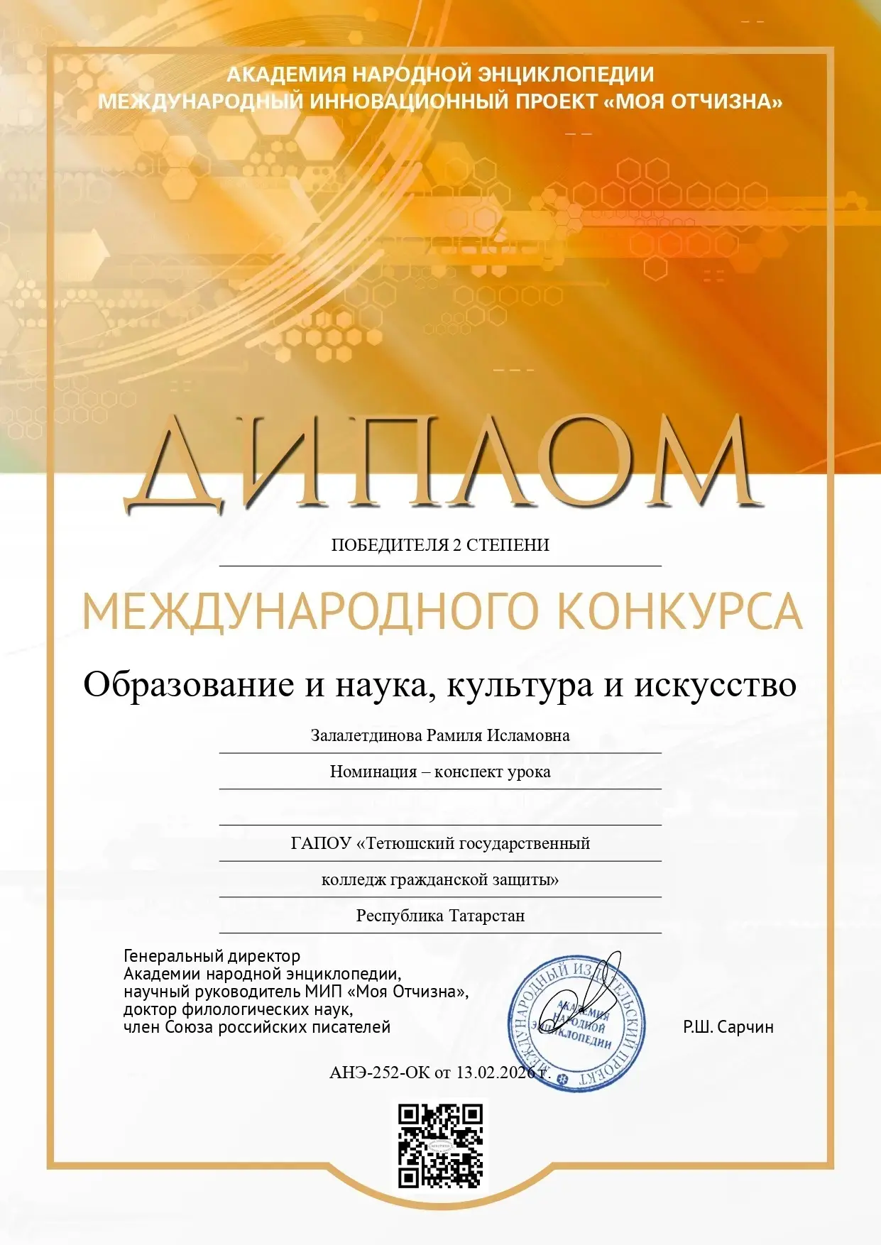 Эта награда — высокая оценка не только личного профессионального мастерства и преданности делу педагога, но и признание вклада в развитие республики.