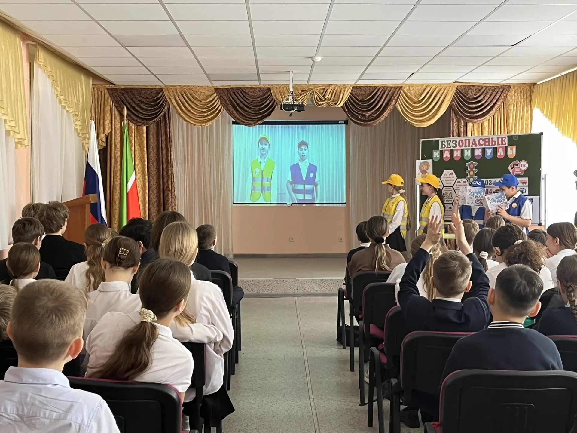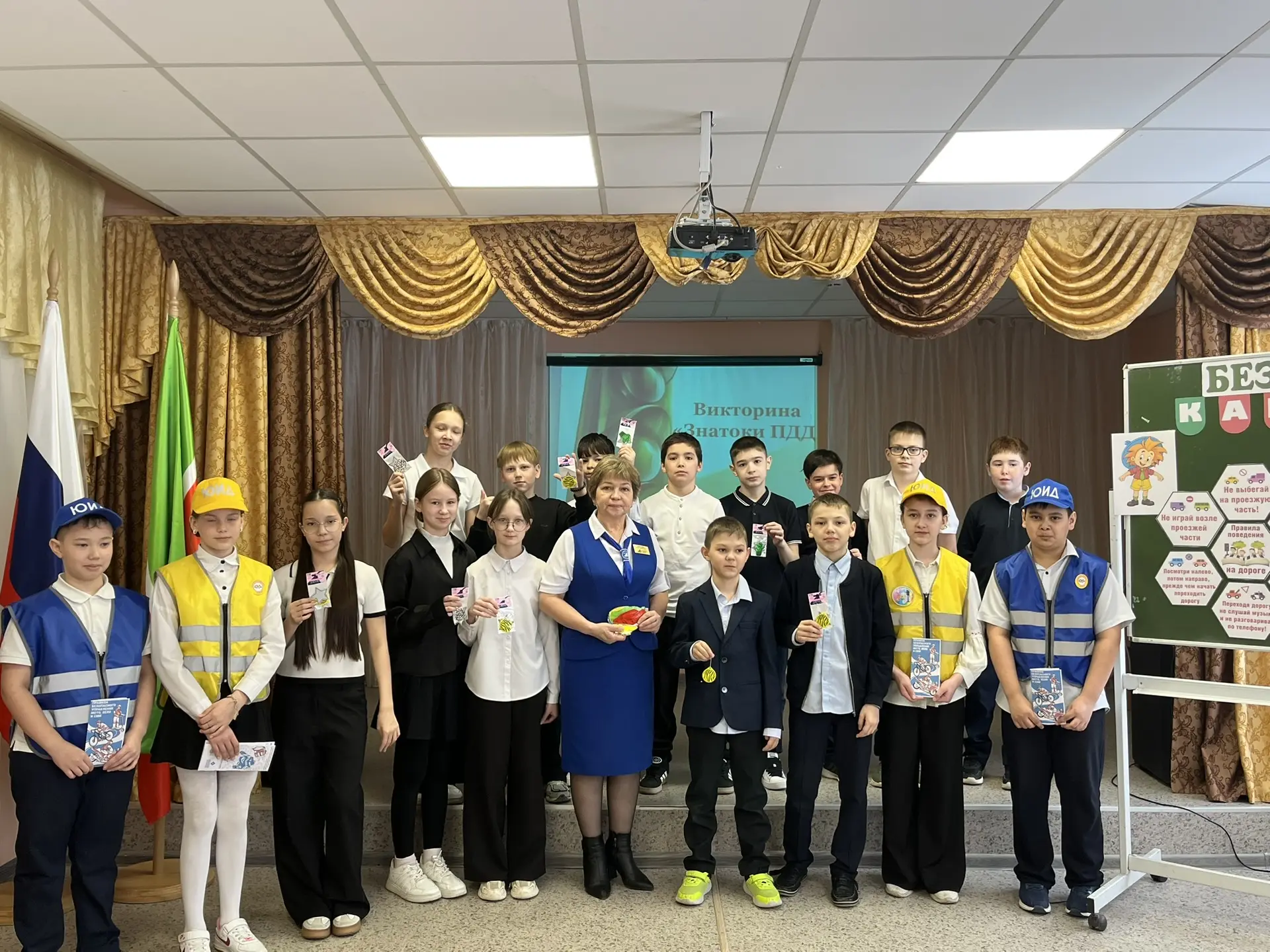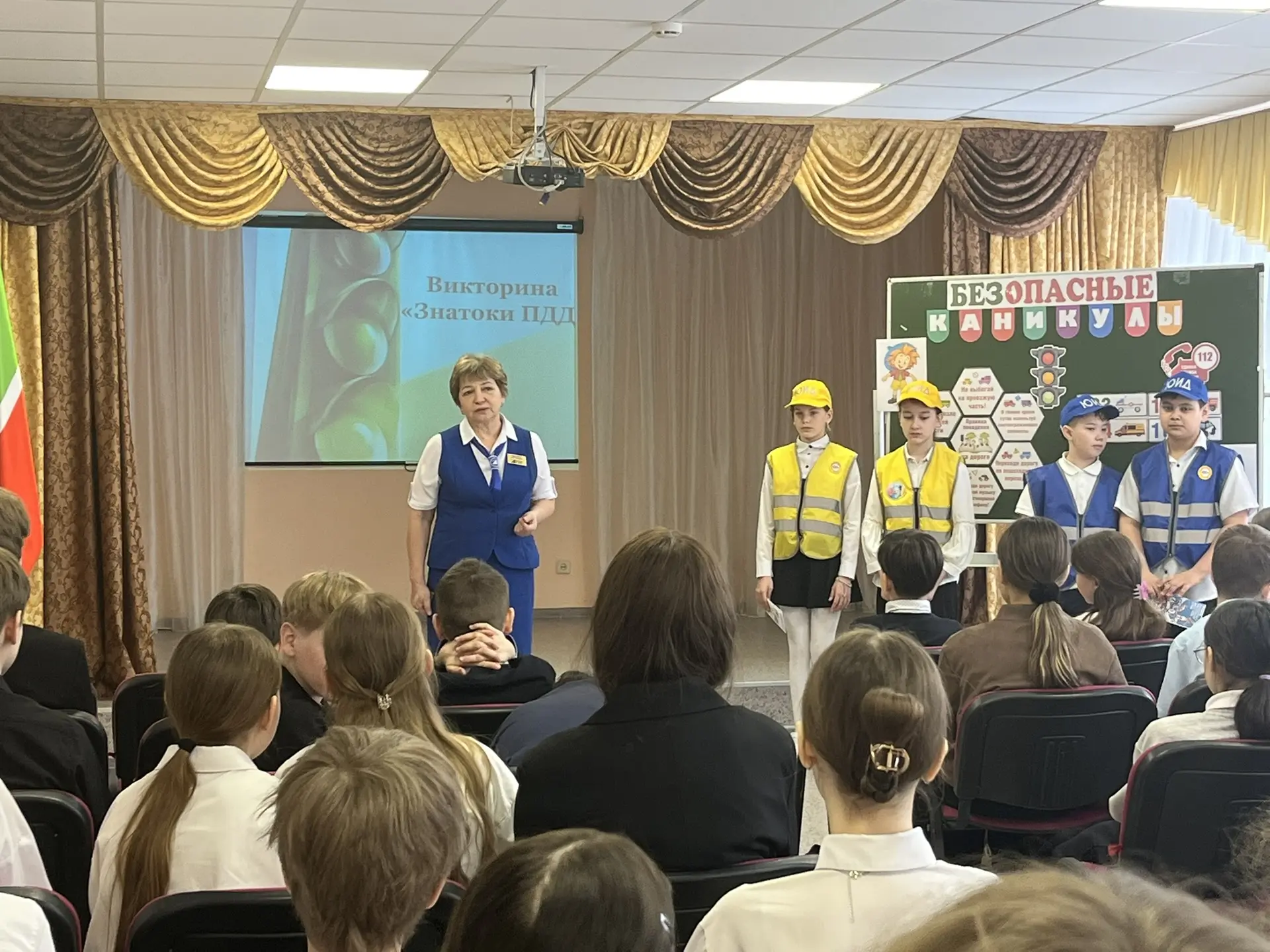 Лилия Мунировна, познакомила ребят со свежей статистикой ДТП с участием детей, а так же ещё раз напомнила ключевые правила дорожного движения и ответила на вопросы школьников и педагогов.
