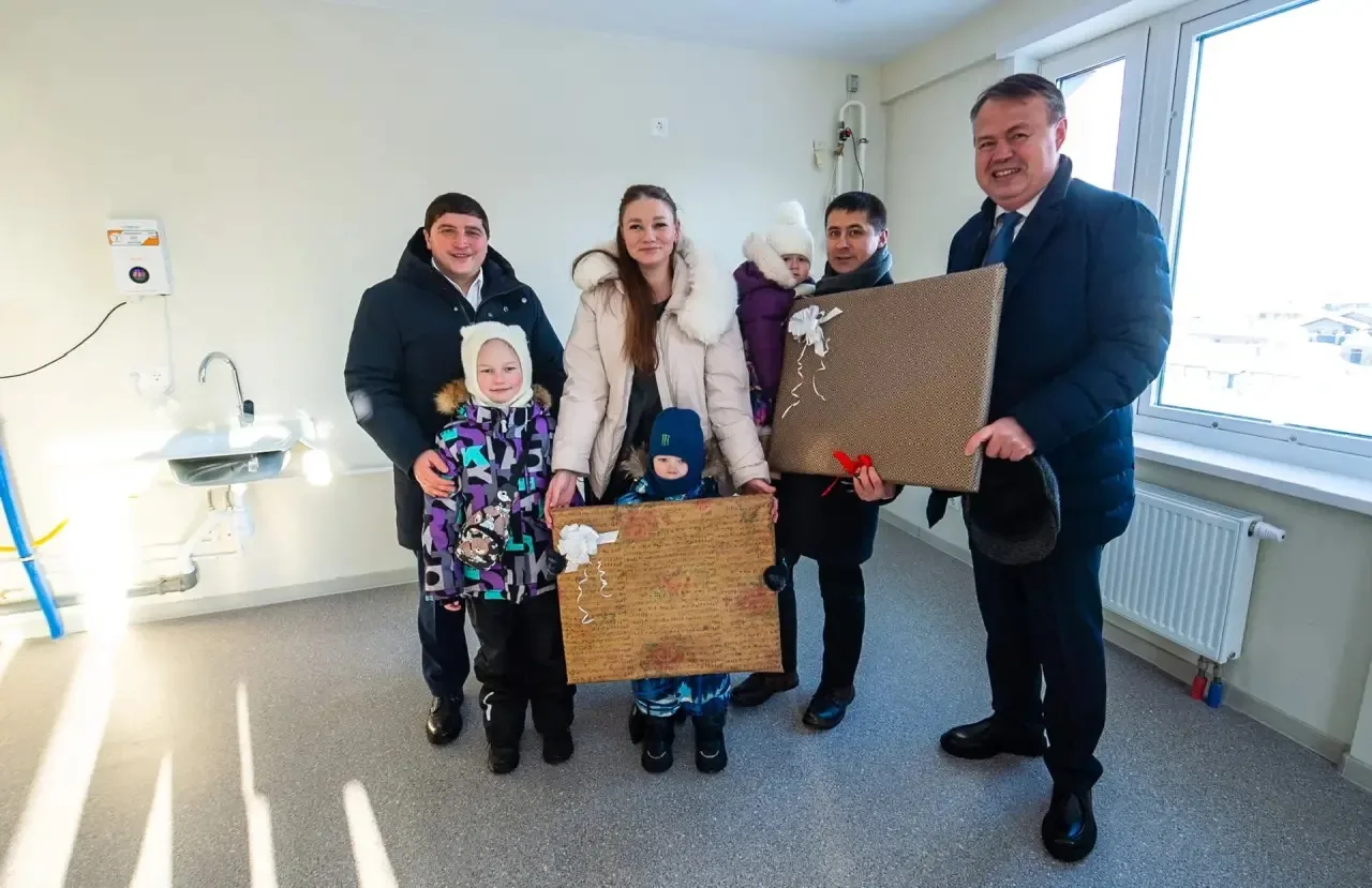 🗝️👍После торжественной части мэр и министр поднялись в новые квартиры, чтобы лично поздравить семьи на их будущей жилплощади. Все новосёлы получили не только ключи, но и памятные подарки. Этот день стал для них настоящим праздником, ознаменовавшим начало жизни в собственных, тёплых и уютных домах.