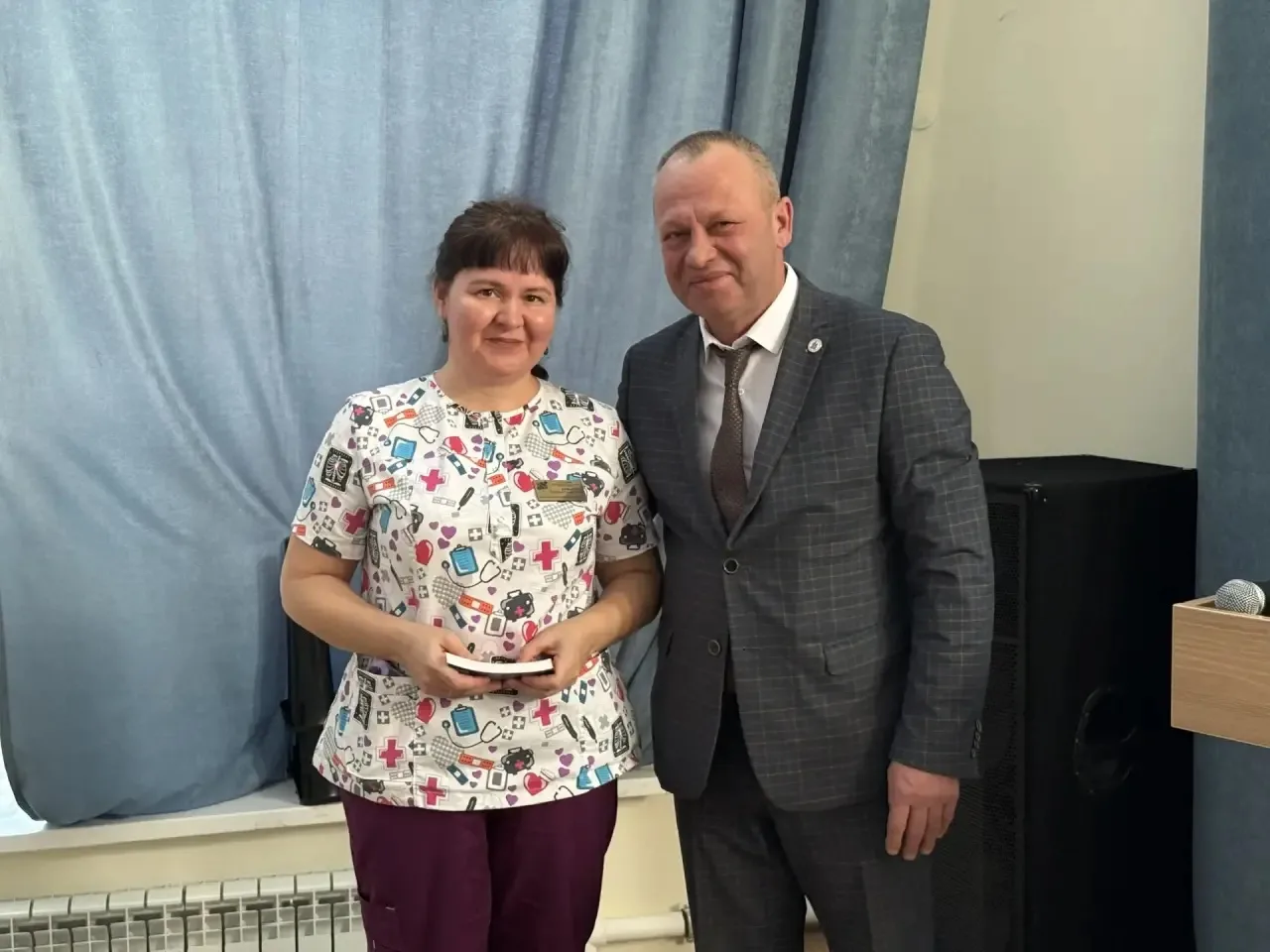 💠К выпускникам по специальности «Лечебное дело» пришли главный врач Нижнекамской ЦРМБ Сергей Мерясев и главная медицинская сестра Евгения Юдина.