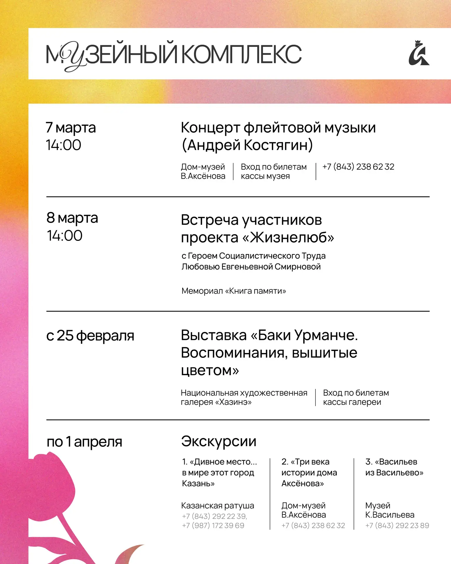 Конечно же в наших соцсетях! Чтобы не пропустить важные и интересные анонсы, события, заглядывать в закулисье и узнавать секреты культурного кода Казани первыми, подписывайтесь на наши аккаунты на любимых площадках: