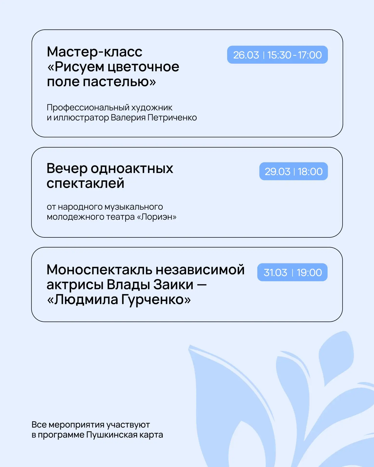 📌 Актуальная информация об интересных событиях регулярно публикуется в канале «Пушкинская карта», присоединяйтесь!