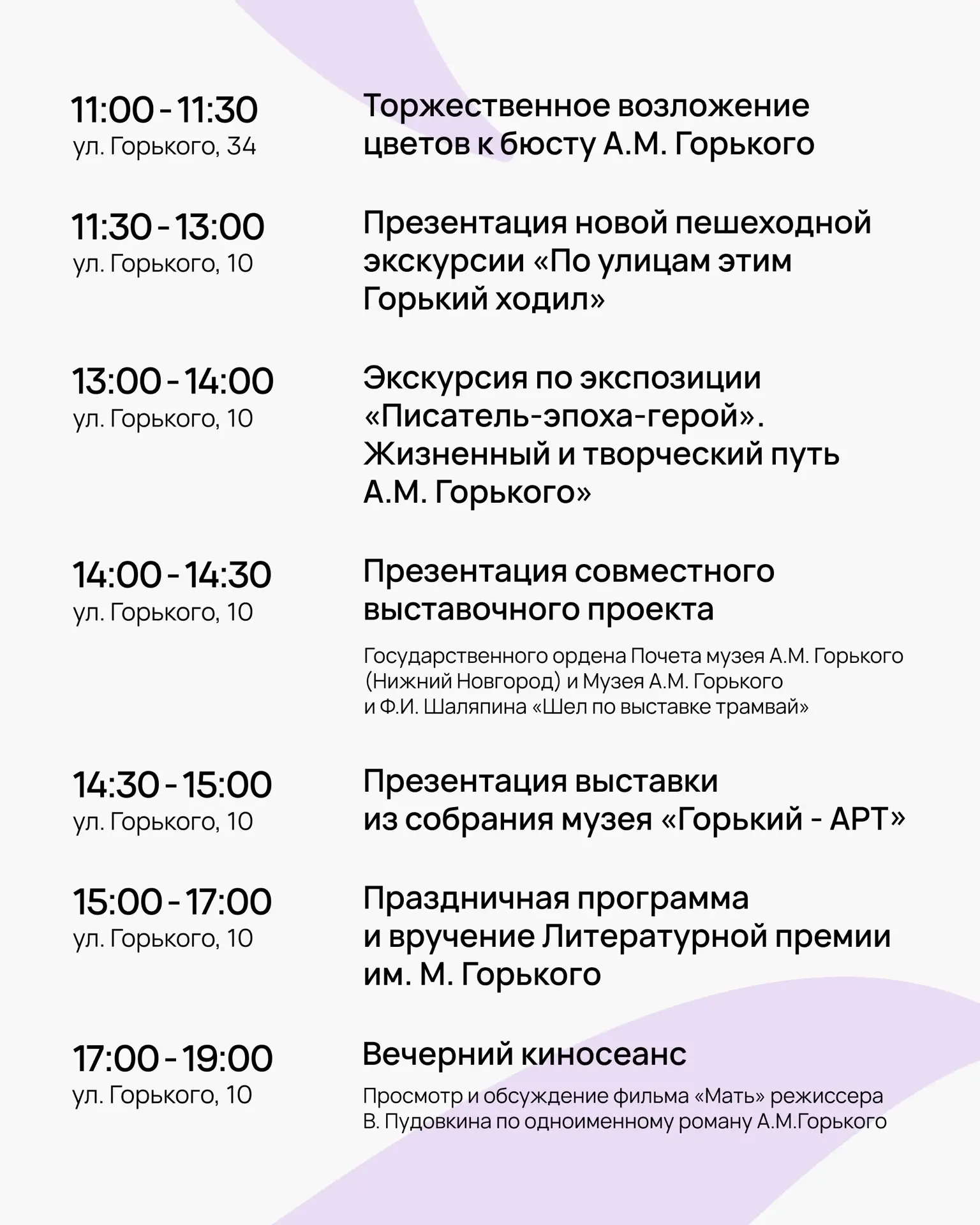 Музей А.М. Горького и Ф.И. Шаляпина проводит серию мероприятий «День Горького». Программа приурочена к празднованию 158-летия великого писателя и мыслителя А.М.Горького.