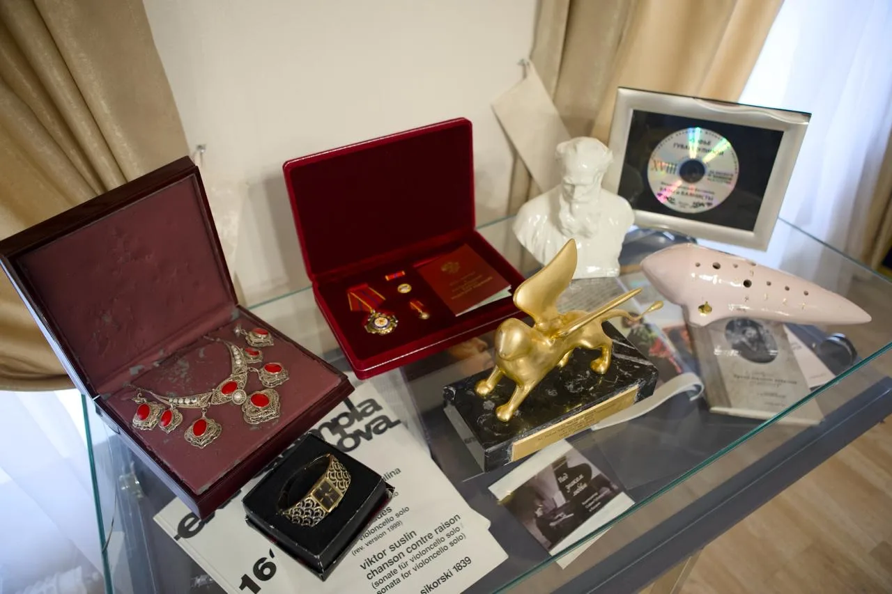Среди переданных реликвий — государственные награды, «Золотой лев» Венецианского фестиваля, семейная фотография, украшения, часы, окарина и компакт-диски с произведениями композитора. Экспонаты пополнят музейную коллекцию и станут частью живой истории её творчества.