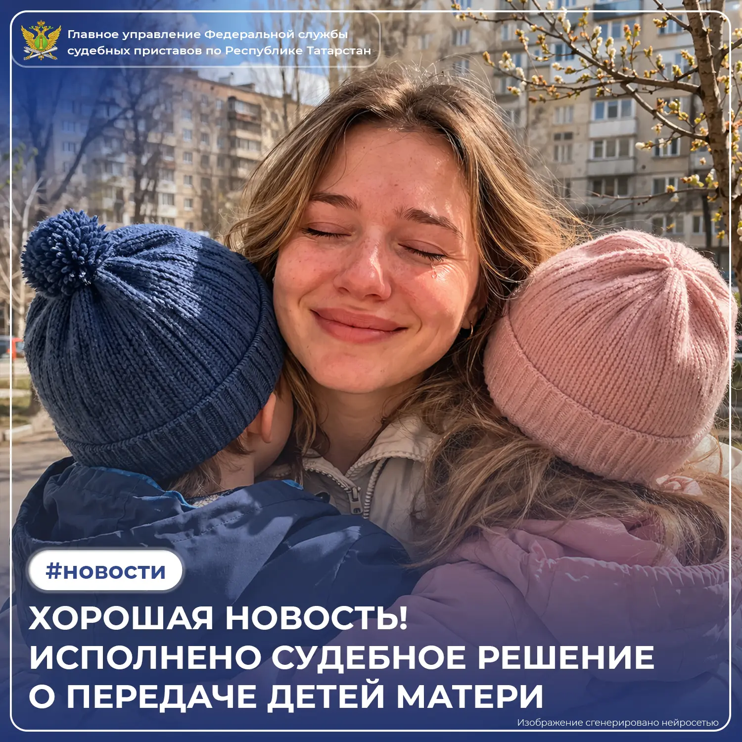 Когда судебное решение - не рекомендация, а прямое руководство к действию, начинается наша работа. В начале года коллеги из Авиастроительного районного отделения судебных приставов г.Казани возбудили исполнительное производство: отец должен передать детей матери по решению суда. История непростая, но закон здесь говорит четко и без двусмысленностей.