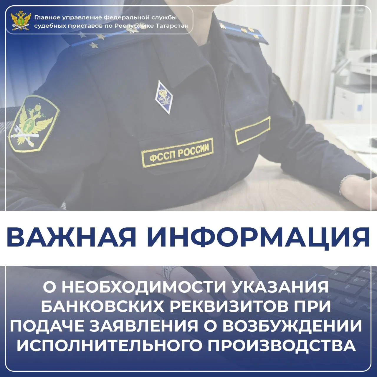 ⚡️ В целях обеспечения своевременного получения денежных средств и сокращения сроков исполнения исполнительных документов рекомендуется при подаче заявления указывать актуальные и корректные банковские реквизиты.