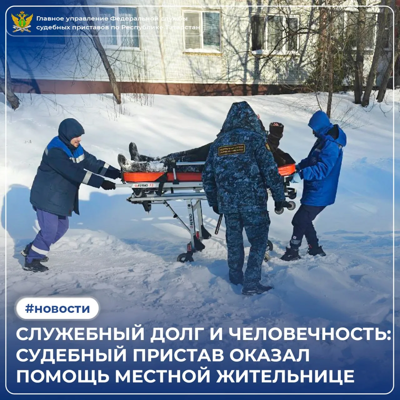 🔵 Рабочий обход - дело привычное, но иногда служба подкидывает совсем нештатные ситуации. Во время проверки территории суда в Набережных Челнах наш коллега - старший смены на объекте - судебный пристав по ОУПДС Азамат Хилаев заметил женщину, лежащую прямо на снегу у здания суда.
