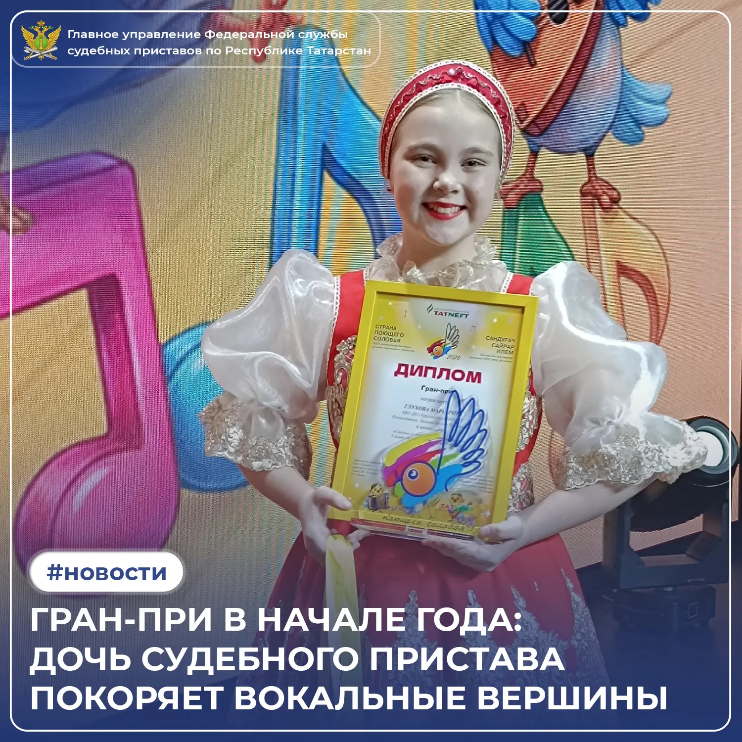 🎙️ Иногда в нашей службе исполнительные листы звучат куда громче аплодисментов… но сегодня - случай особый. Начало 2026 года для семьи моего коллеги, начальника Ютазинского районного отделения судебных приставов Дмитрия Глухова, выдалось не просто удачным, а по-настоящему звонким - его дочь Маргарита взяла Гран-при на фестивале «Страна поющего соловья».