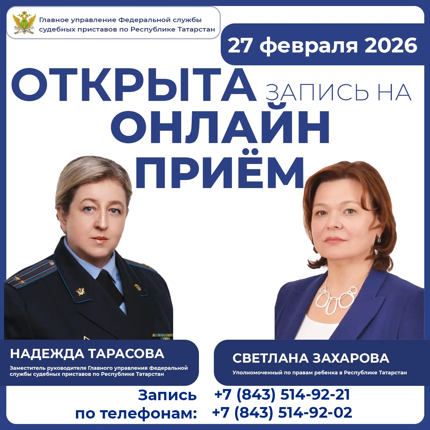 Чтобы записаться на онлайн приём, достаточно заранее позвонить по телефонам в Казани: 8 (843) 514-92-21 или 8 (843) 514-92-02. Дальше всё просто: приходите в ближайшее районное отделение судебных приставов (или туда, где ведётся ваше исполнительное производство), берите паспорт и документы.