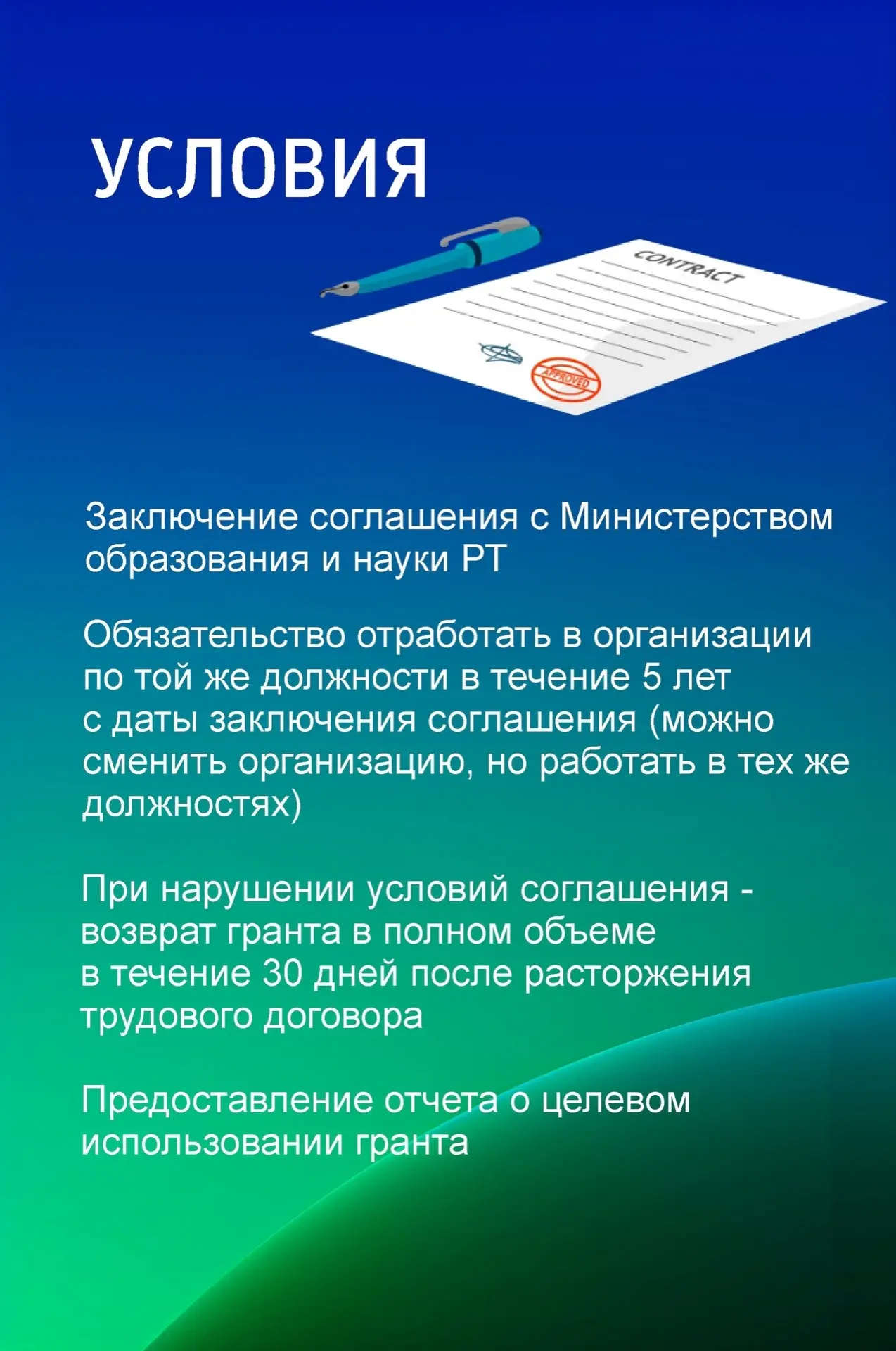 В настоящее время формируется перечень должностей учителей-предметников, соответствующих приоритетным направлениям кадровой потребности. После этого будет утверждена конкурсная комиссия, разработаны формы соглашения о представлении гранта и отчетности.