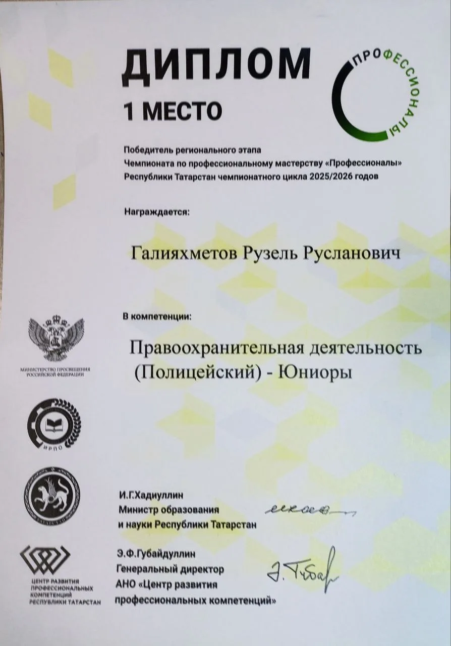 🎙Иванов Роман получил заслуженное третье место на Всероссийском конкурсе профессионального мастерства «Профессионалы» Республики Татарстан сезона 2025/2026 годов.
