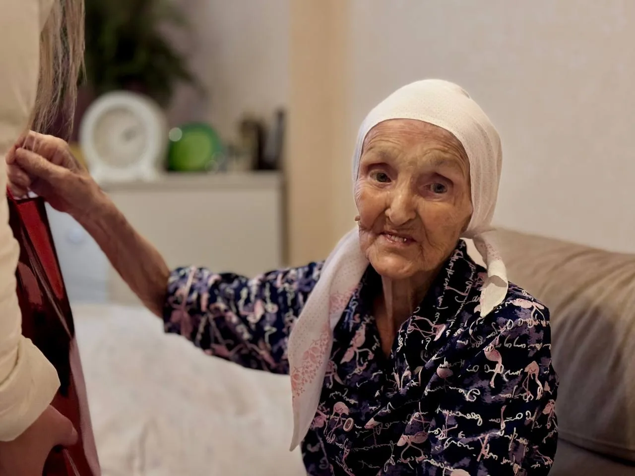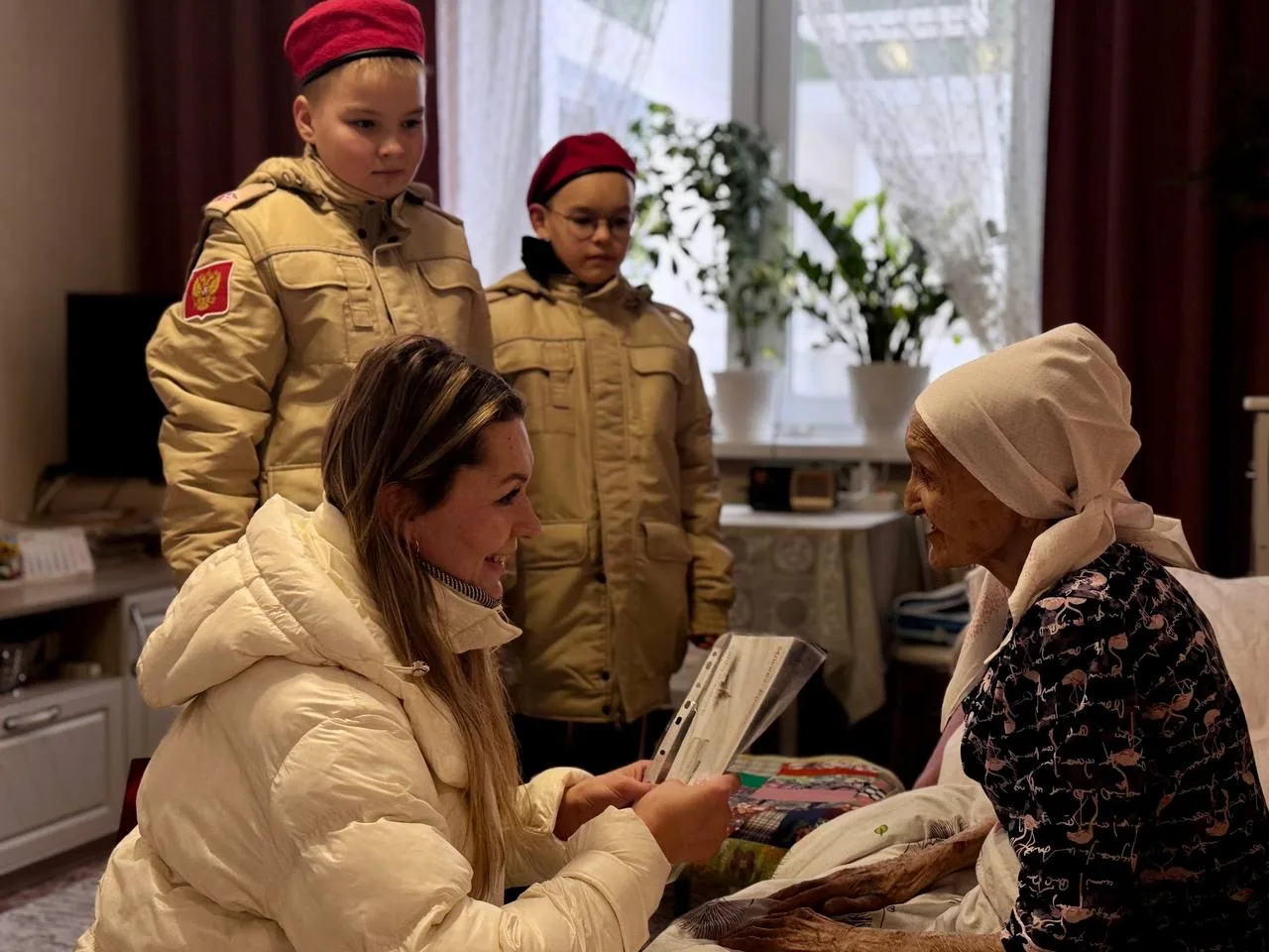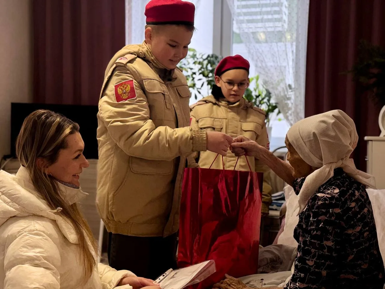 📨Они вручили ей тёплые поздравления, памятный подарок и особое письмо от Президента России, выражающее глубокую признательность за её труд и самоотверженность в годы суровых испытаний.