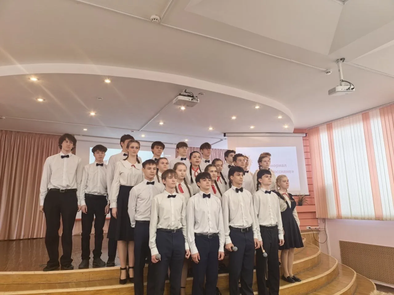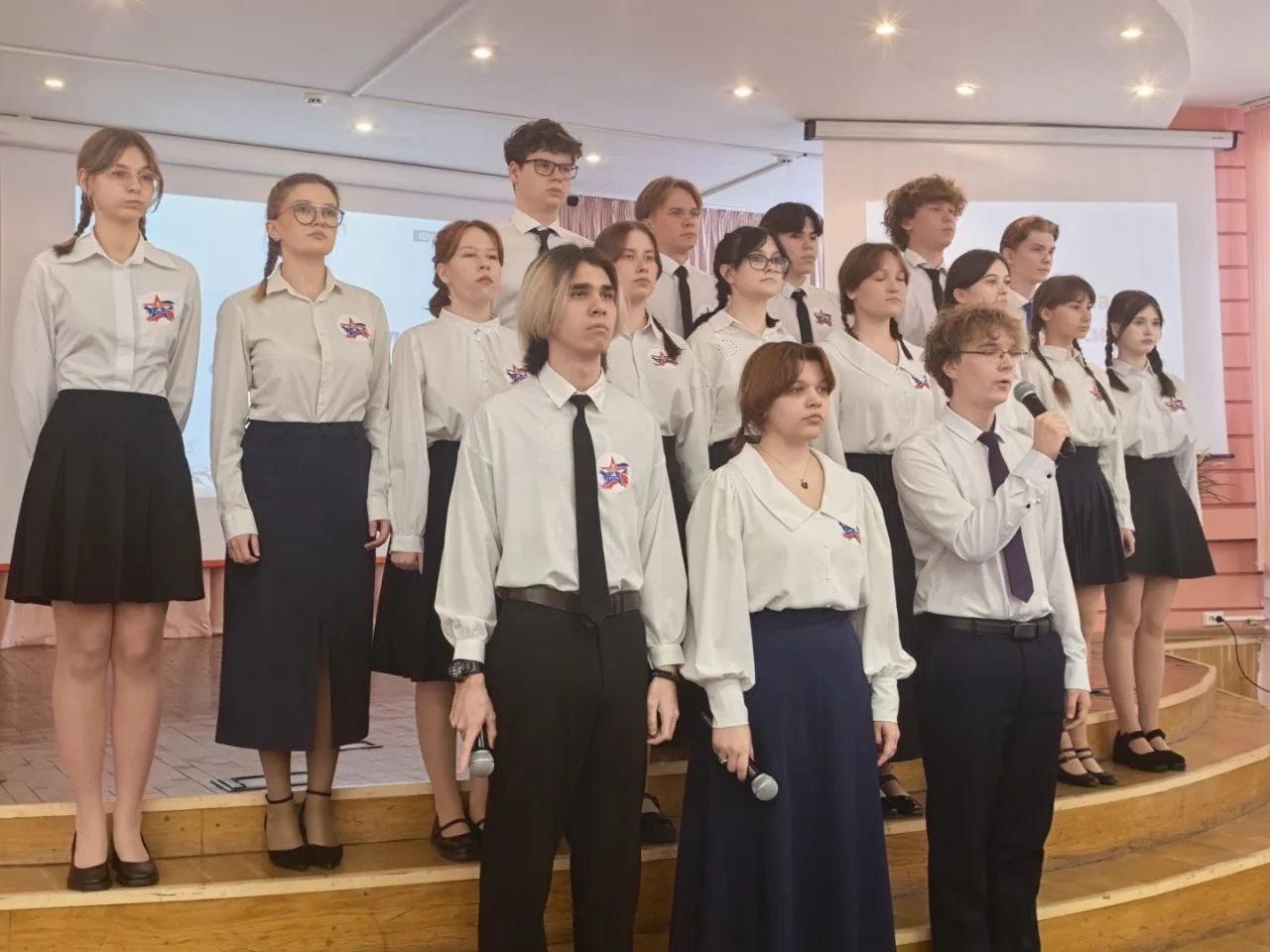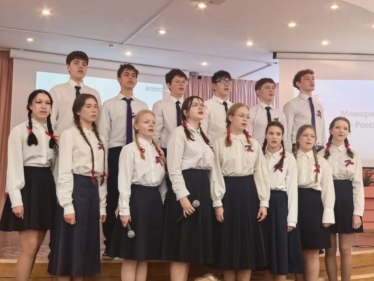 Сегодня на сцене выступали ученики 1, 10 и 11 классов. Каждая песня была пронизана любовью к Родине, гордостью за ее защитников.