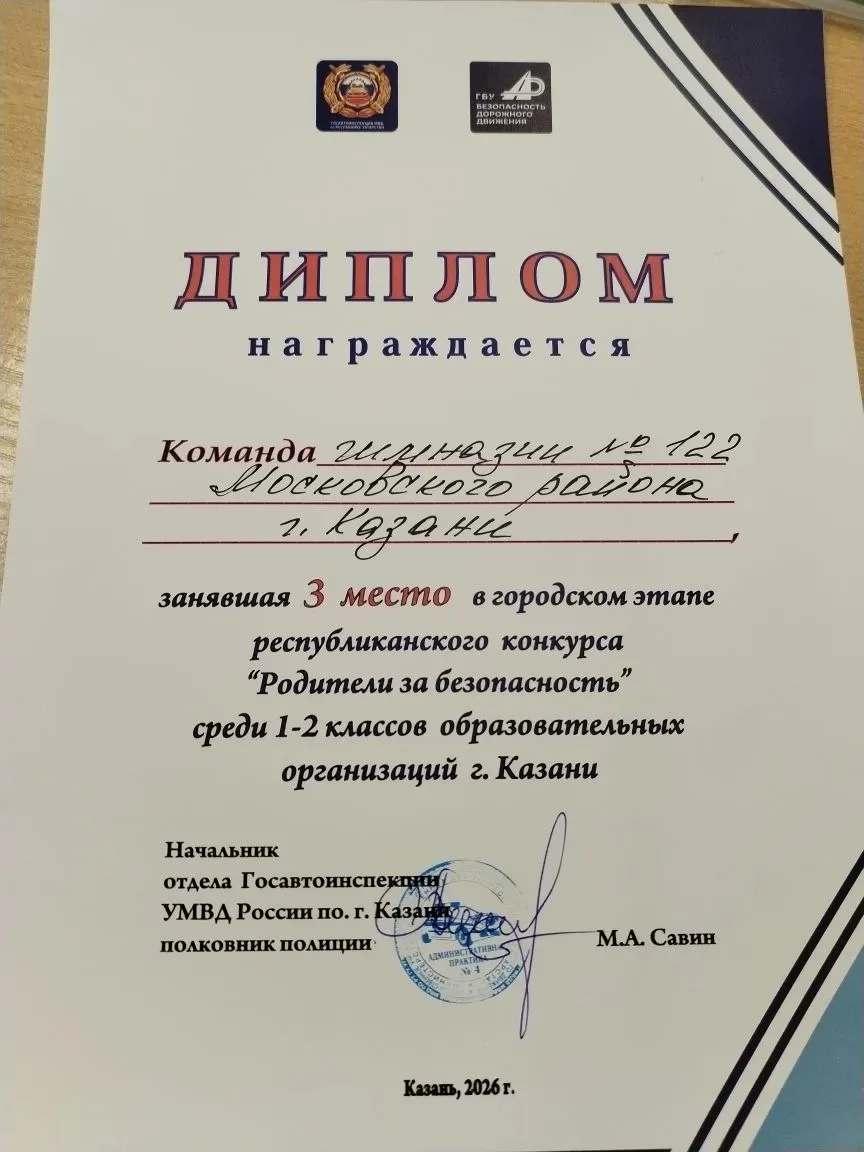 Команда 5"Г" класса получила диплом 1 степени в Республиканском конкурсе среди команд школьников "Звезда" Республиканского олимпиадного центра Республики Татарстан. Молодцы!