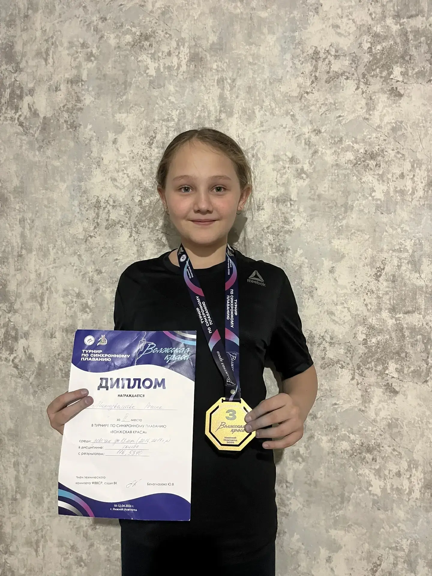 Ученица 3 „ В” класса в составе команды „Акватика” приняла участие в турнире по синхронному плаванию „Волжская краса” и заняла 3 место среди девочек до 13 лет. Молодец!Желаем дальнейших успехов!