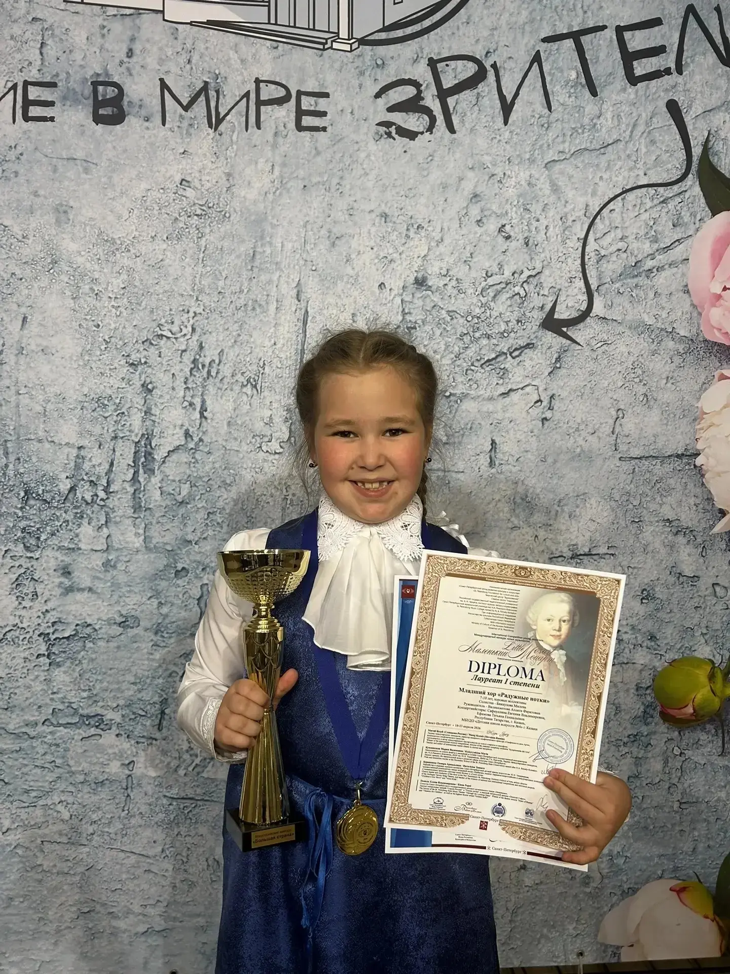 Ученица 2 Б класса участвовала вместе с коллективом музыкальной школы номер 4 в Международном конкурсе юных музыкантов "Маленький Моцарт" и Всероссийском конкурсе искусств "Большая страна 2026".