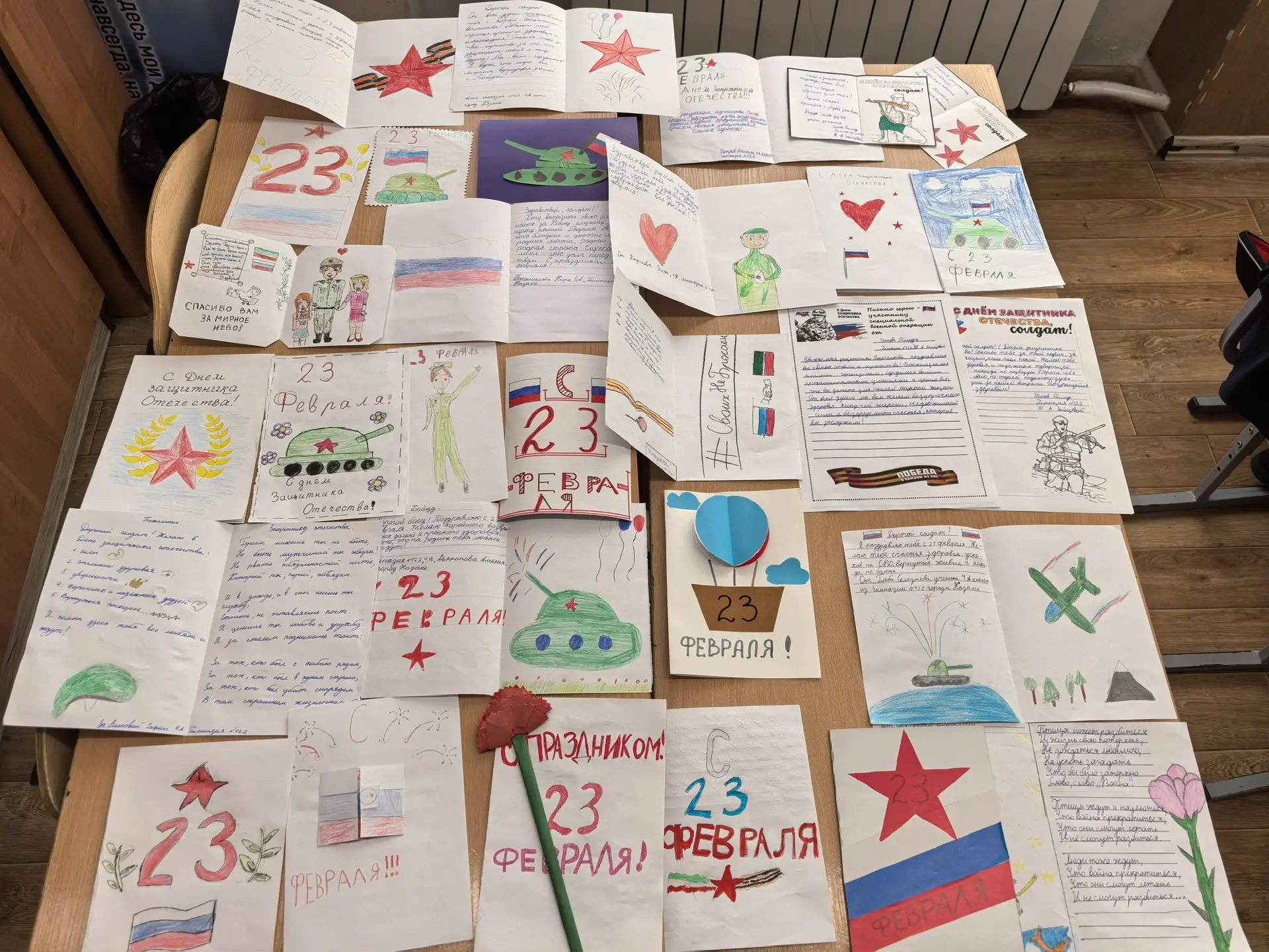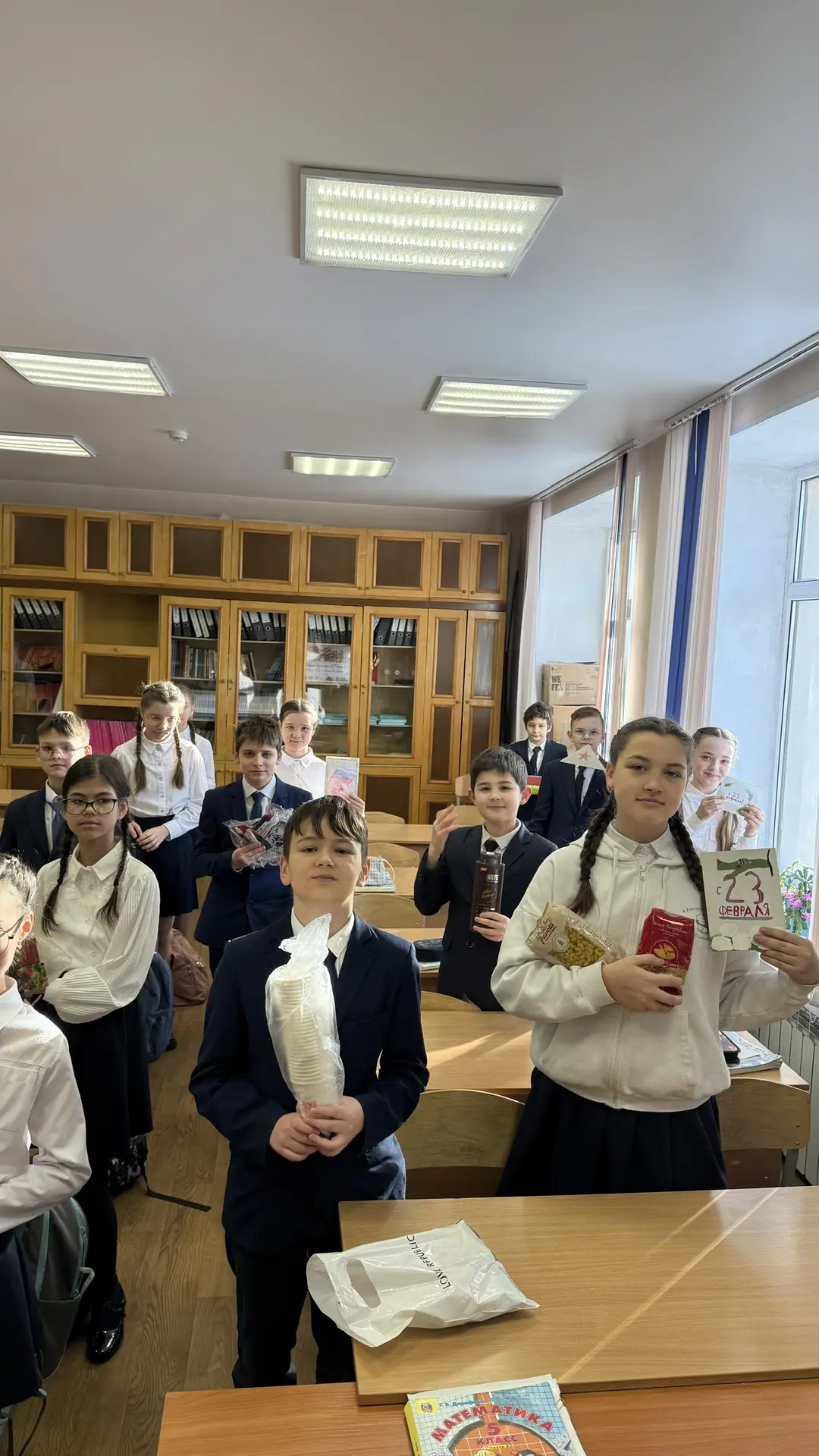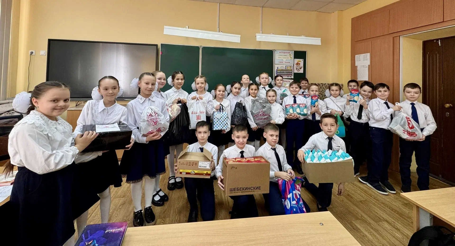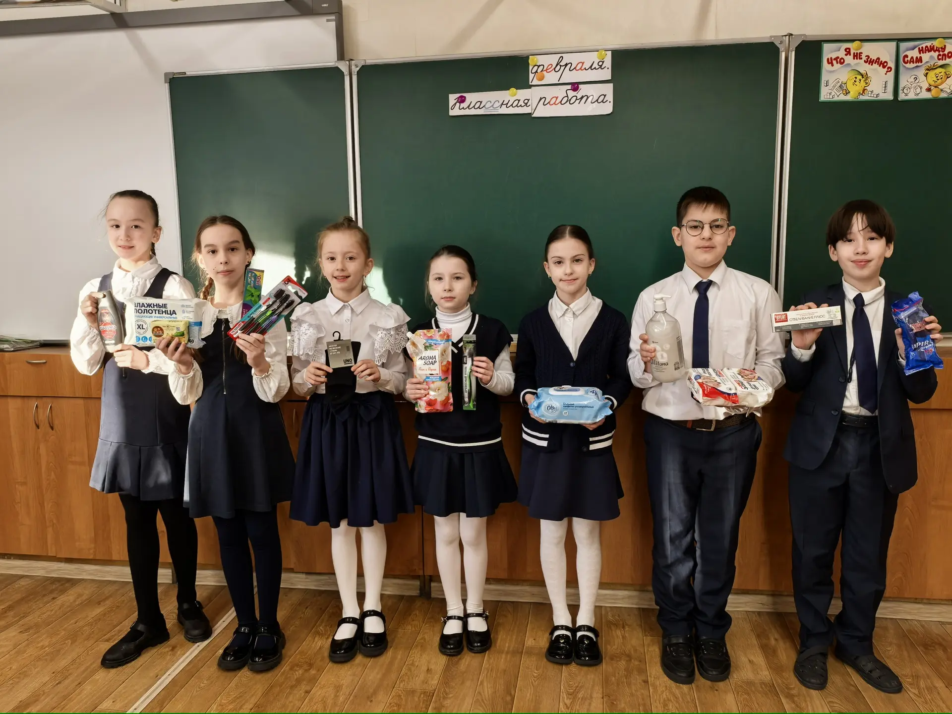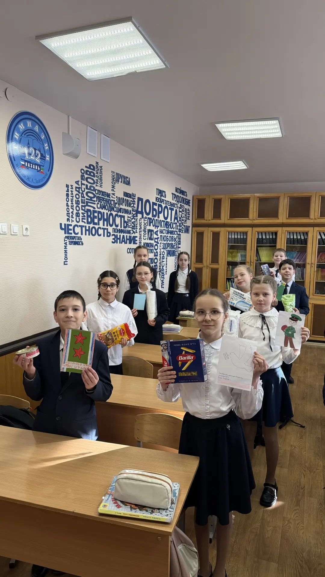 Ученики 4А класса вместе с родителями приняли активное участие в изготовлении праздничных открыток и сборе гуманитарной помощи для бойцов СВО: продуктов питания и предметов личной гигиены.