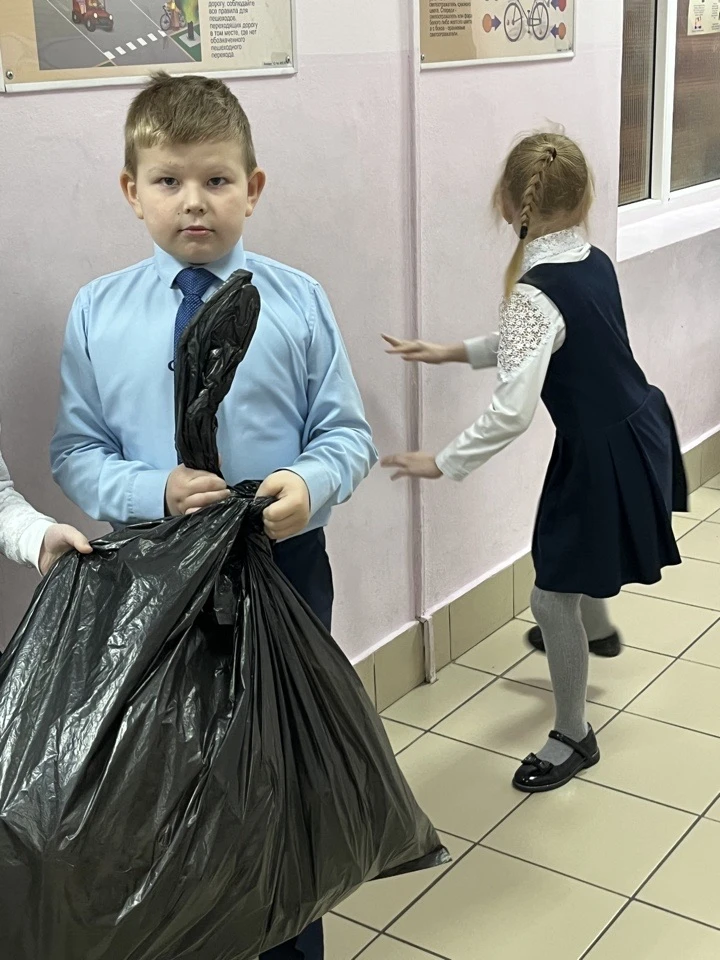 Ученики 1а класса принимает самое активное участие в акции "Ход пластиком".