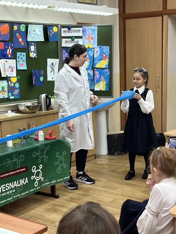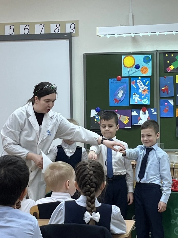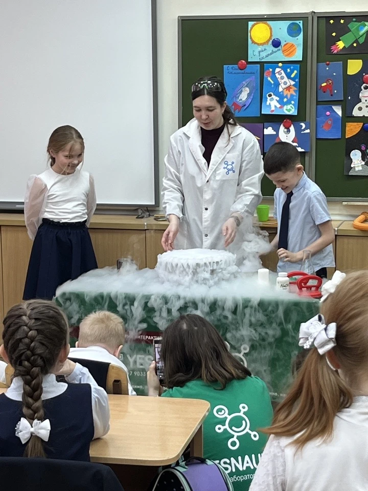В рамках недели, посвященной Юрию Гагарину, ученики 1А класса окунулись в мир науки и экспериментов🙂 А все почему?)Потому что к ним в гости пришли ученые из Лаборатории Yesnauka☺