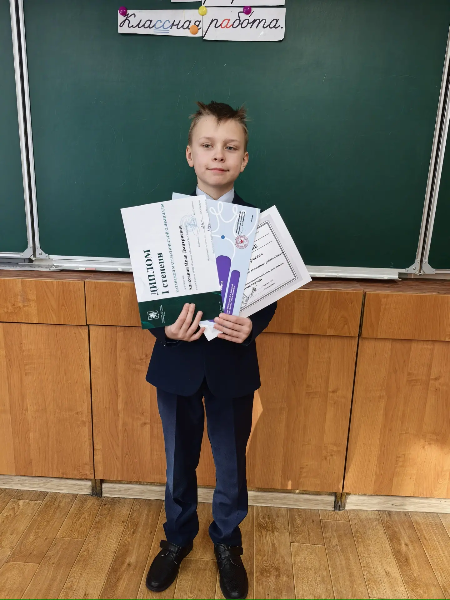 По русскому языку получил диплом победителя, а по математике и «О важном» — сертификаты участника.