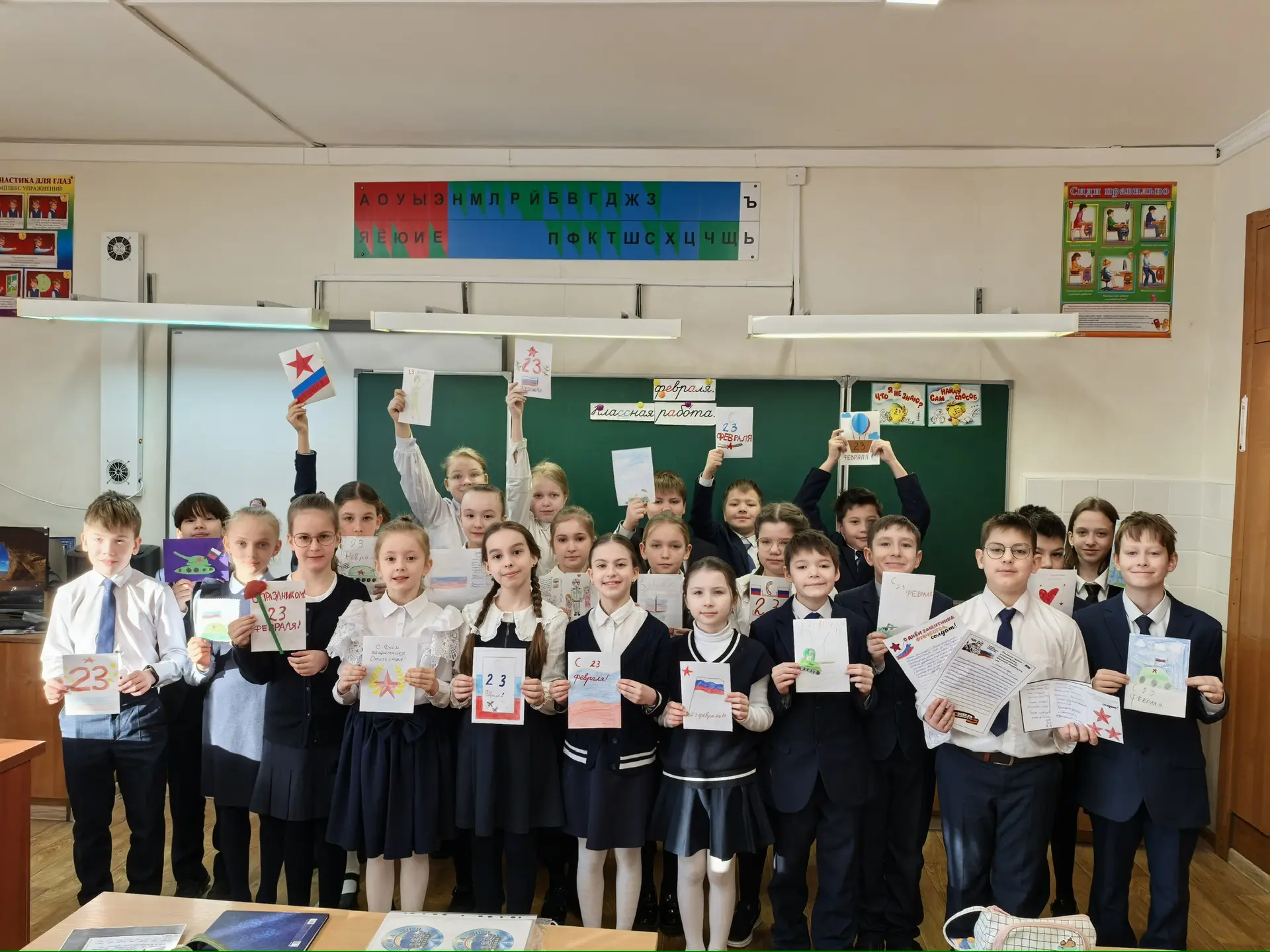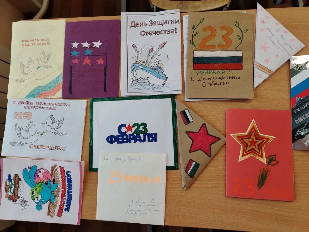 Ученики 1 «Г» класса подготовили открытки для солдат на 23 февраля.