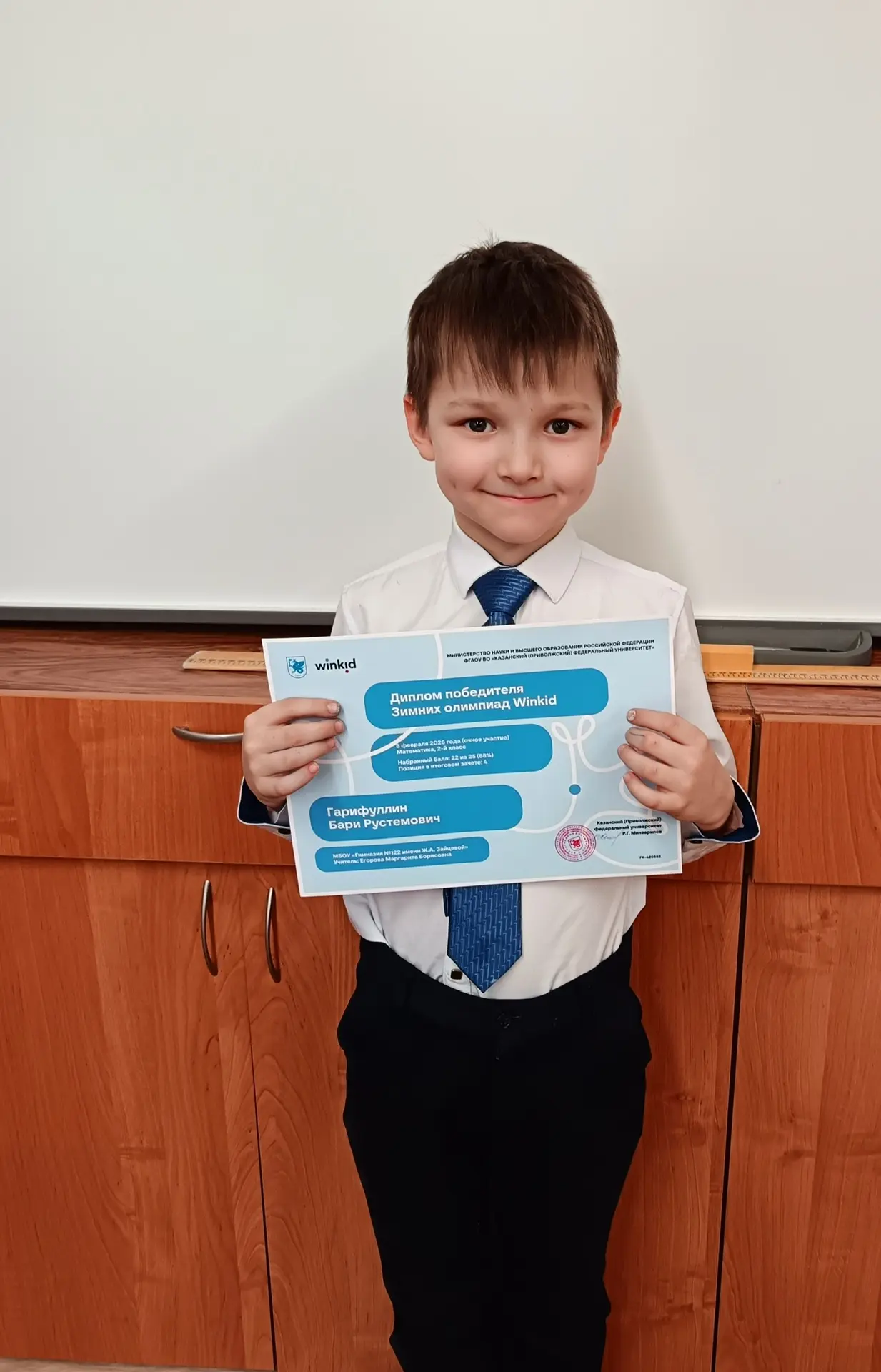 Поздравляем ученика 2 Б класса , ставшего победителем в зимней олимпиаде Winkid.